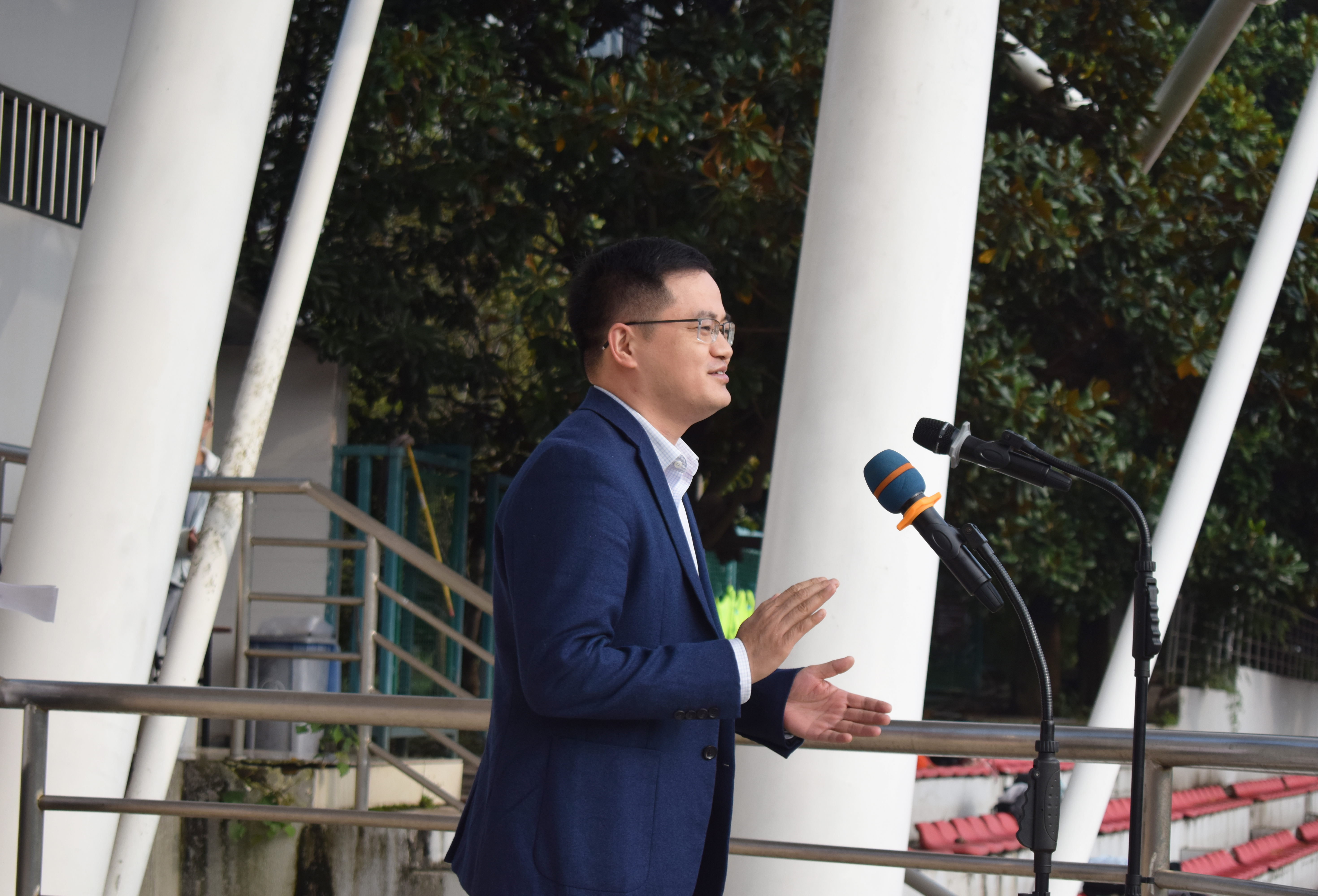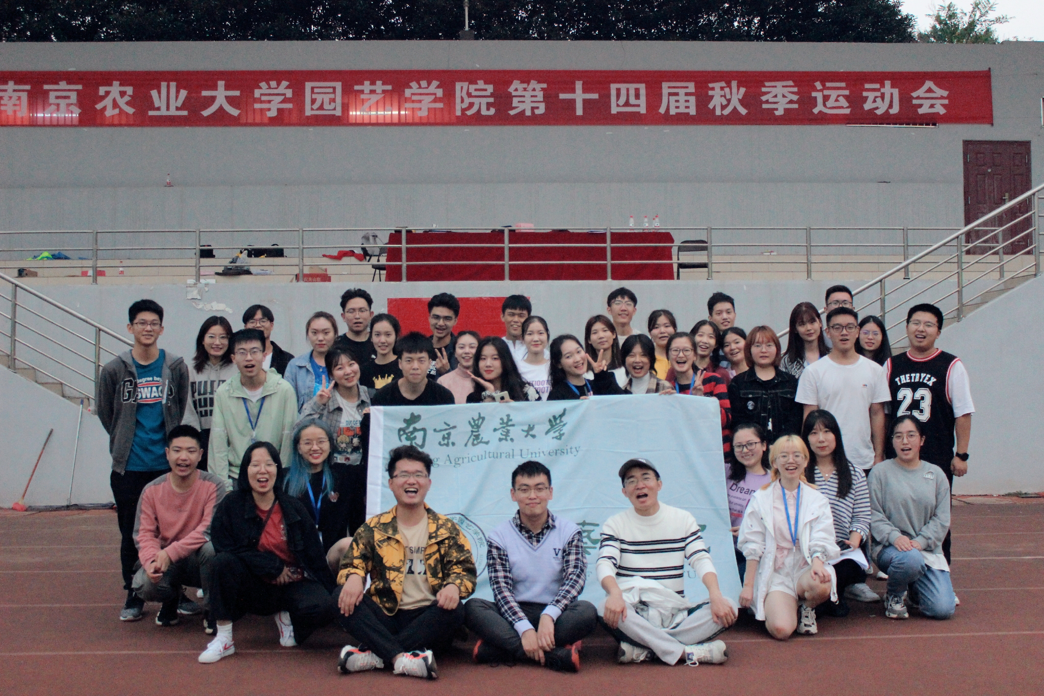 第十四届秋季运动会开幕式如期举行。学院党委书记韩键,党委副书记文习成,学校体育部孙建,学院研究生辅导员芮伟康,本科生辅导员夏丽、褚阳阳、李柯、蔡行楷出席开幕式。