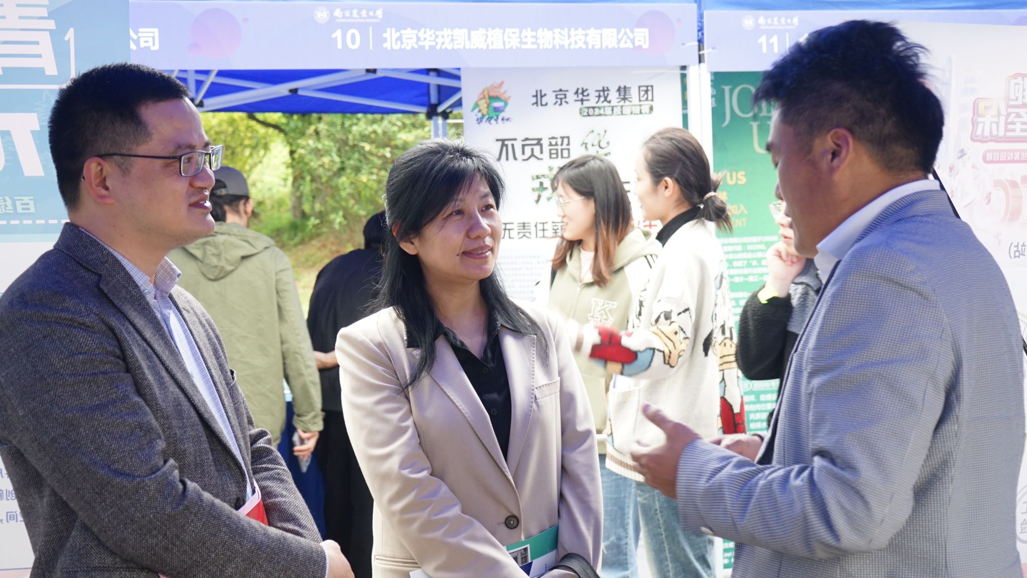 王春春在现场与企业高管进行深入交流,细致了解用人单位的招聘需求,共同探讨了人才培养、科学研究、产教融合、社会服务等方面协同合作的可能性。同时,他也与前来求职的园艺学子亲切交流,勉励他们不忘“强农有为,强国有我”的使命担当,利用专业所学矢志实现“园艺让生活更美好,让老百姓生活更幸福”的美好愿景。