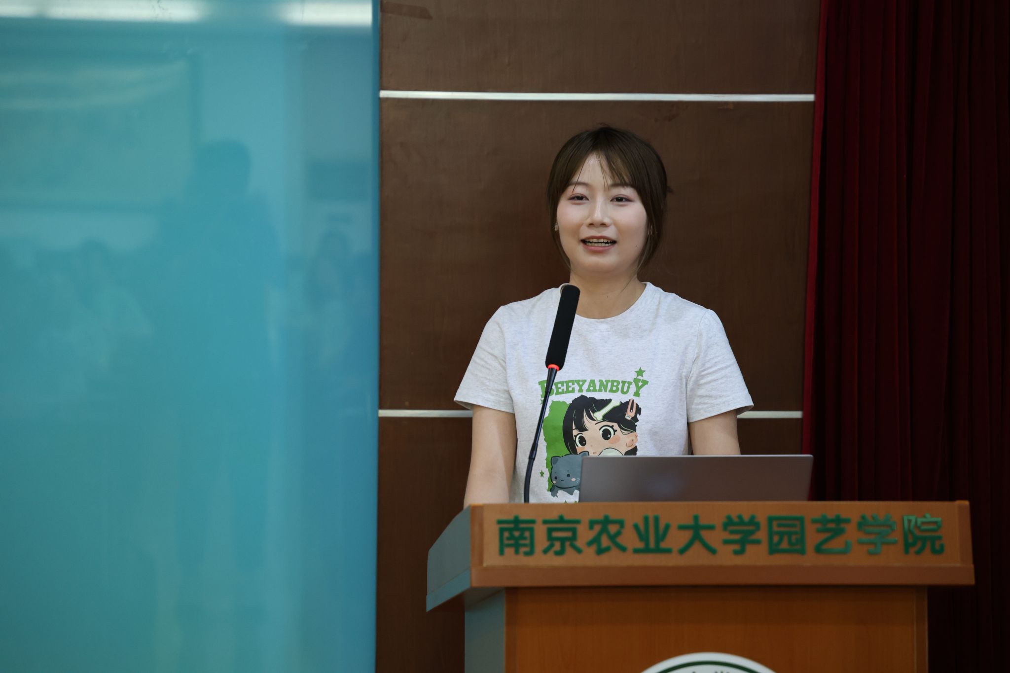 李明潞作为往届优秀营员代表发言,她回顾自己曾经论坛参会经历,以学习、科研、实践、视野四个角度讲述在南农园艺的学习与收获,最后以学姐身份向所有营员发出诚挚的同行邀请。