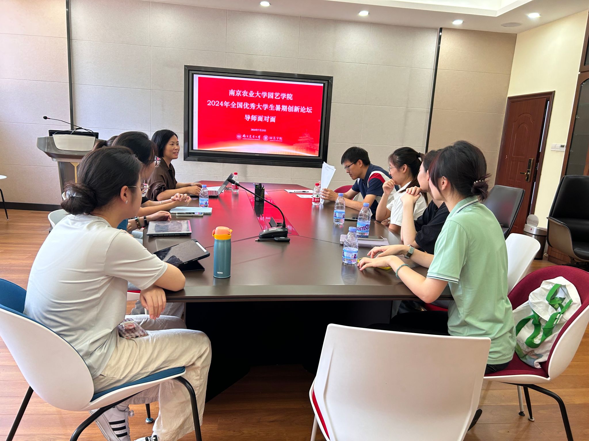 2024年全国优秀大学生暑期创新论坛导师面对面,在学院各会议室分学科点有序开展,来自蔬菜、果树、观赏园艺、设施园艺、茶学、风景园林6个学科的25名专业教师参会交流,所有营员通过PPT汇报自己的学习经历、科研成果,导师们对同学们汇报内容进行提问,并开展科研意向的交流探讨与答疑解惑,现场气氛热烈融洽。