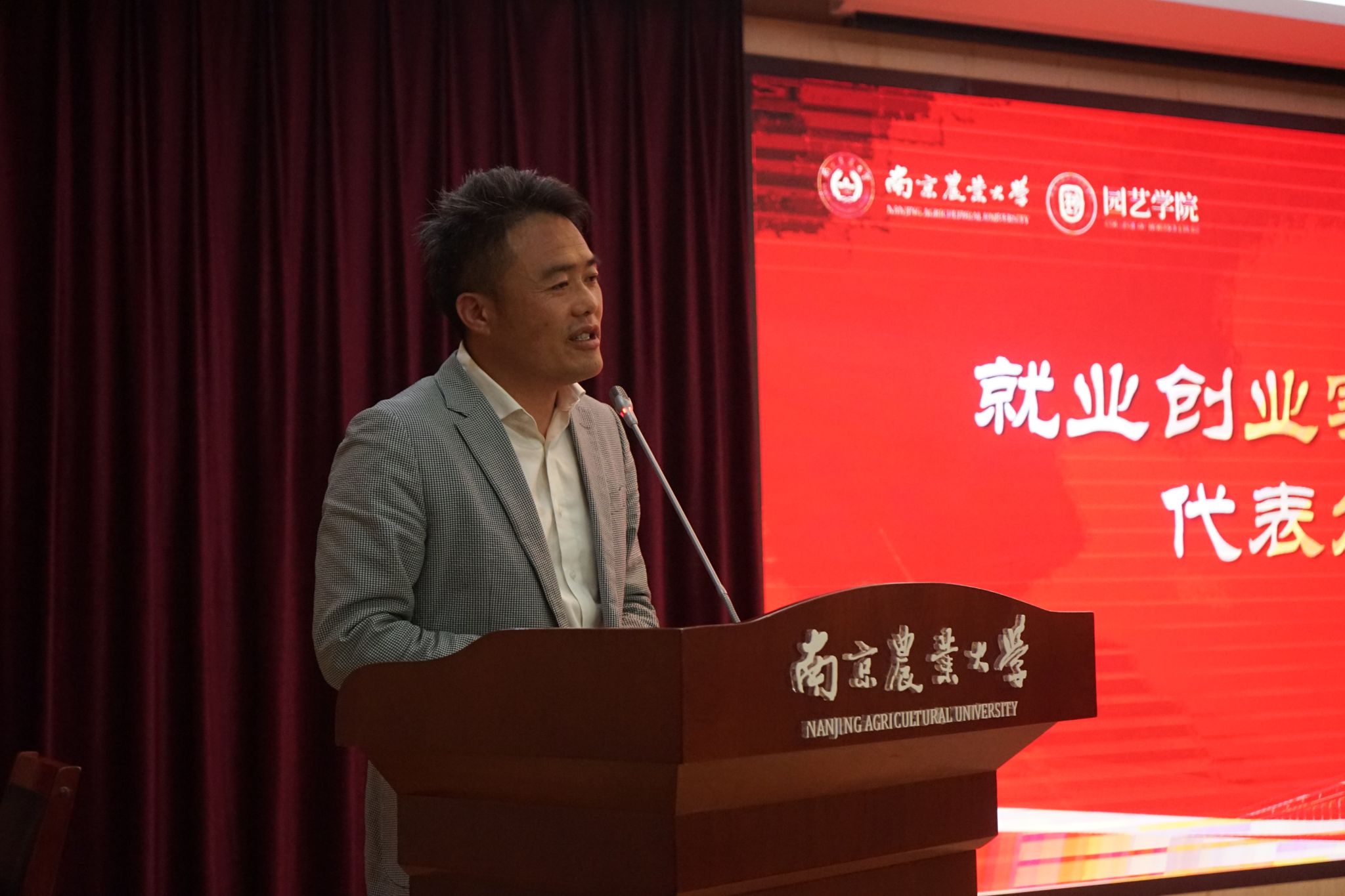 姚礼报作为就业创业实习基地代表发言。他表示学校是科技创新的前沿,企业是市场实践的先锋,希望园艺学子珍惜在校求学岁月,打好学科专业基础,同时也将携手学校,探索校企合作更多可能,助力青年走向社会,发挥属于自己的光和热。