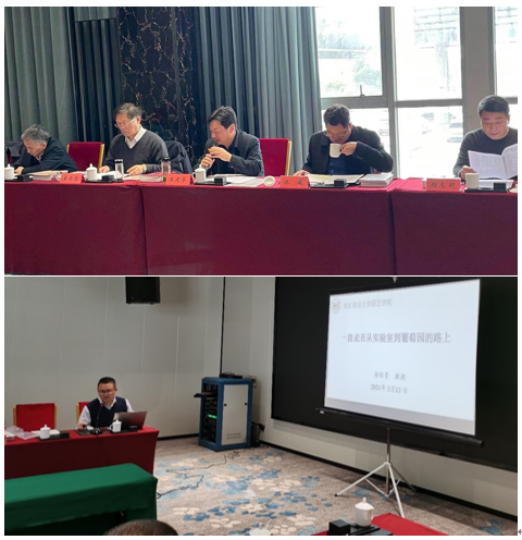 上官凌飞副教授对我省葡萄产业现状和育种概况进行了详细的介绍,并向与会的领导和专家介绍了协作组成立的背景与筹备情况。房经贵教授围绕团队在应用基础研究、技术创新、产学研合作、服务三农等方面所取得的成果做了题为“我们一直走在实验室到葡萄园的路上”的报告。