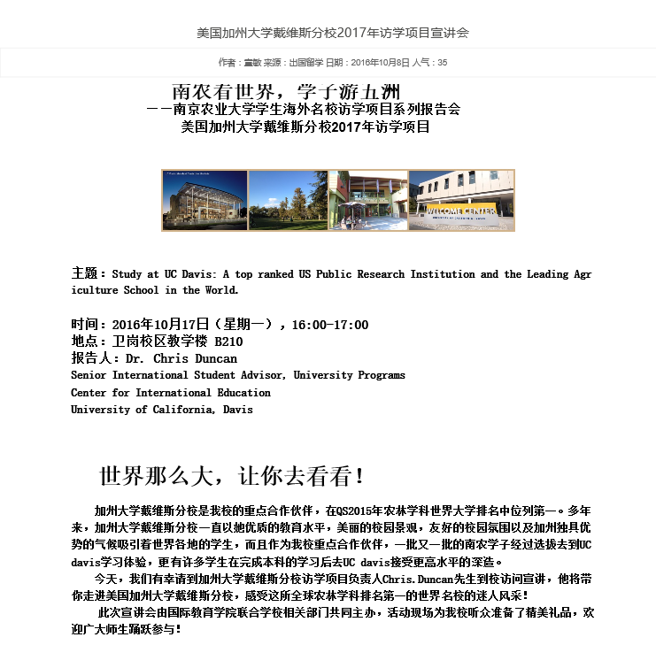 美国加州大学戴维斯分校2017年访学项目宣讲会