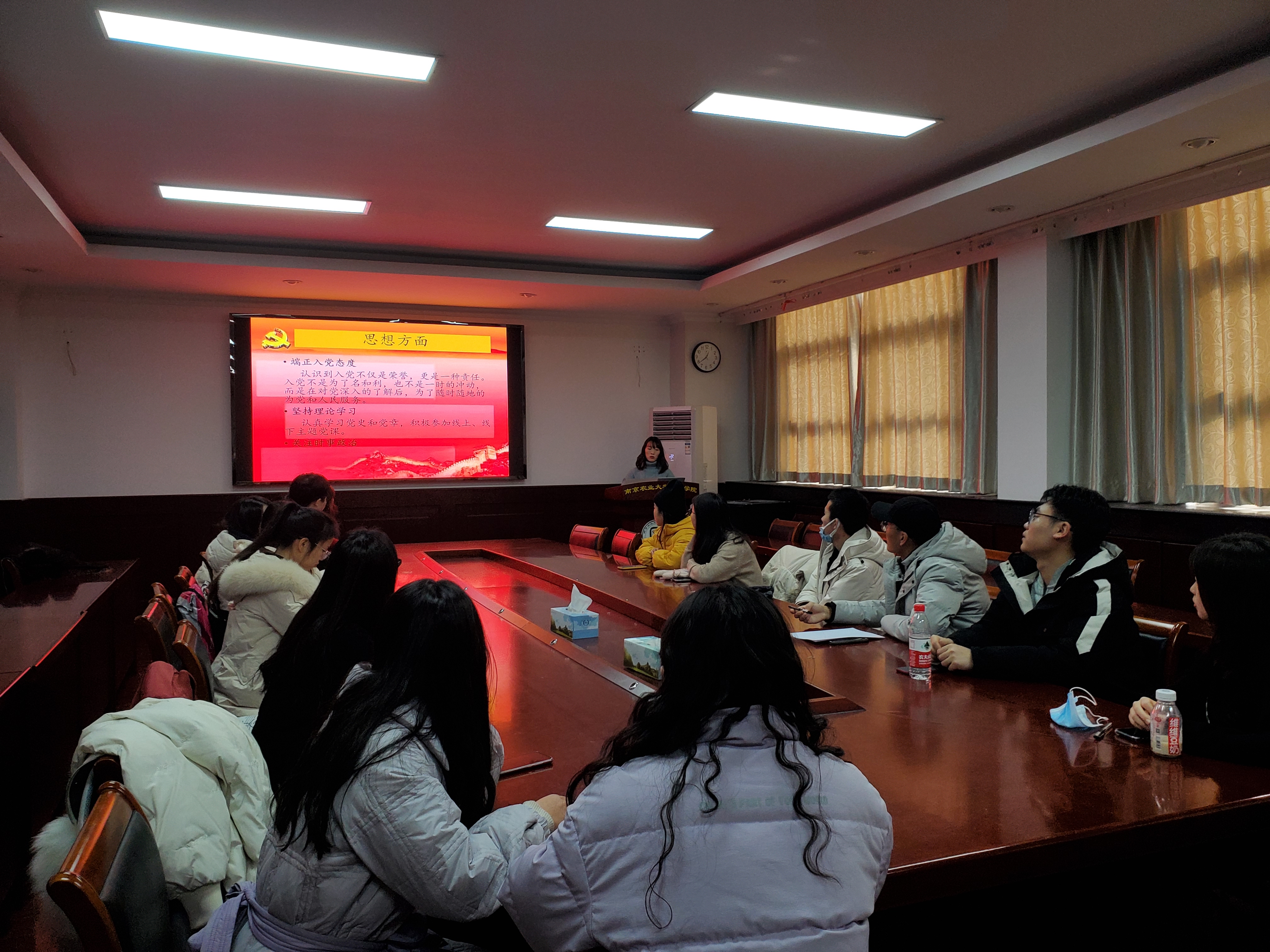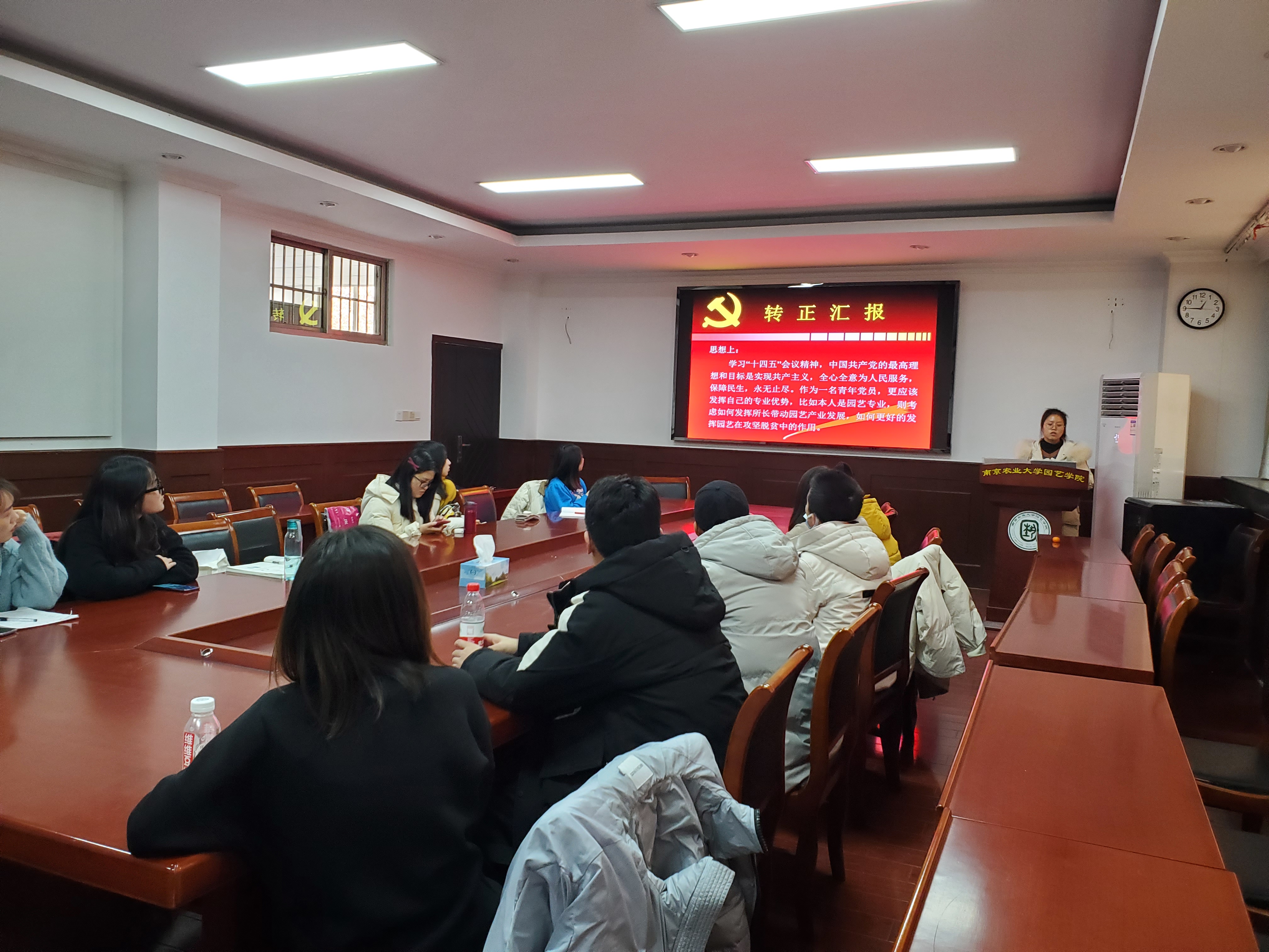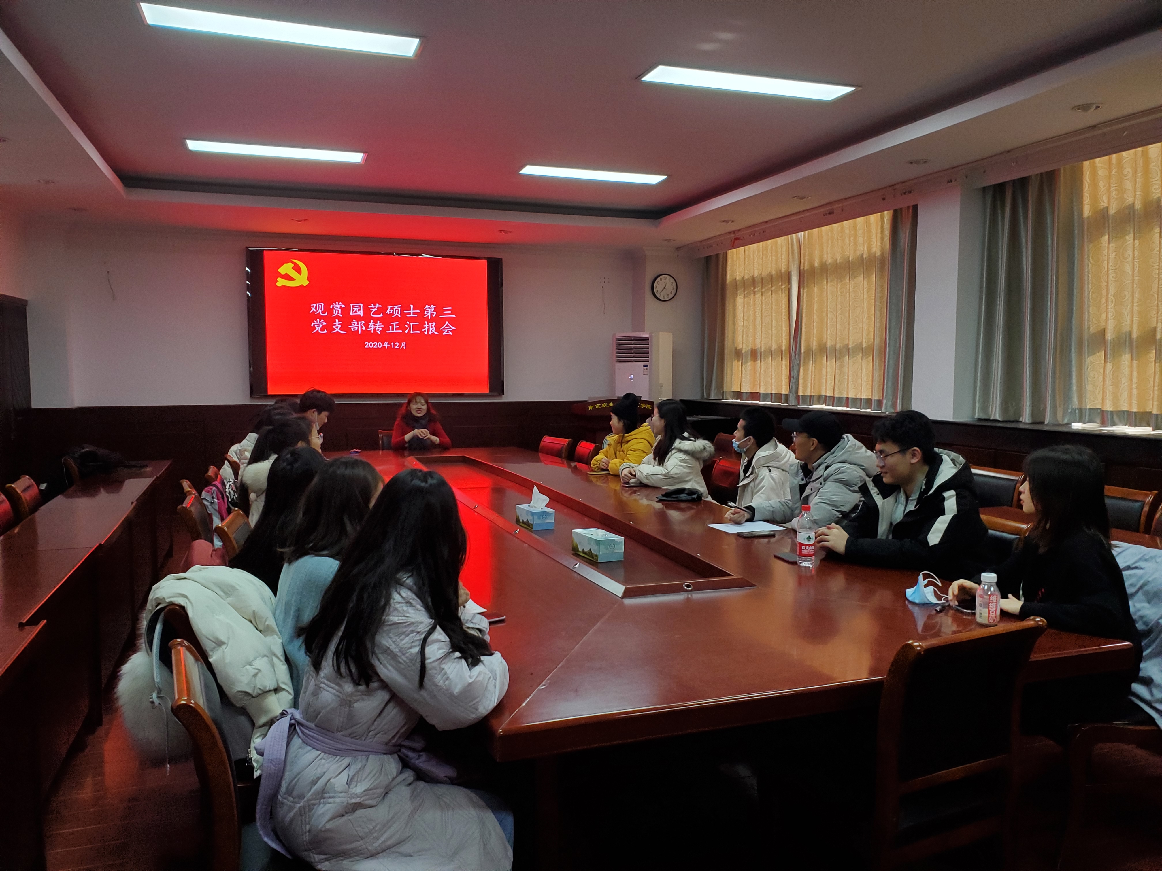 20201214日中午,观赏园艺专硕第三党支部于生科楼B4003举办预备党员转正答辩会。此次会议共有范海云和袁储聪两名预备党员预备期满,需要转正。支部全体党员参加本次会议,会议由支部书记窦靓主持。