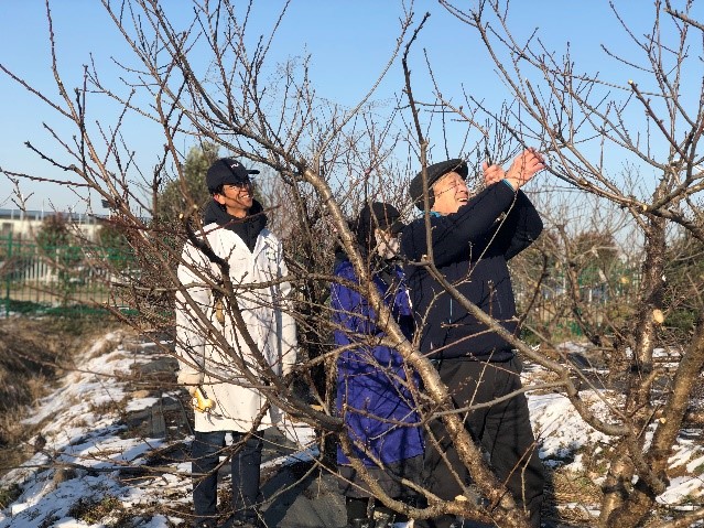 修剪对于从事果树专业的教师是一门必修课,也是园艺工人和园艺师的看家本领,它的实践性、操作性和技术性都很强。针对果树教师支部的很多青年教师本、硕、博读得不是果树专业,他们实验室工作做得相当不错,但实践经验不足,修剪技术更是他们的软肋。针对这一点,12月31日,中共果树教师支部开展了“新老教师传帮带,薪火相传共成长”主题党日活动。