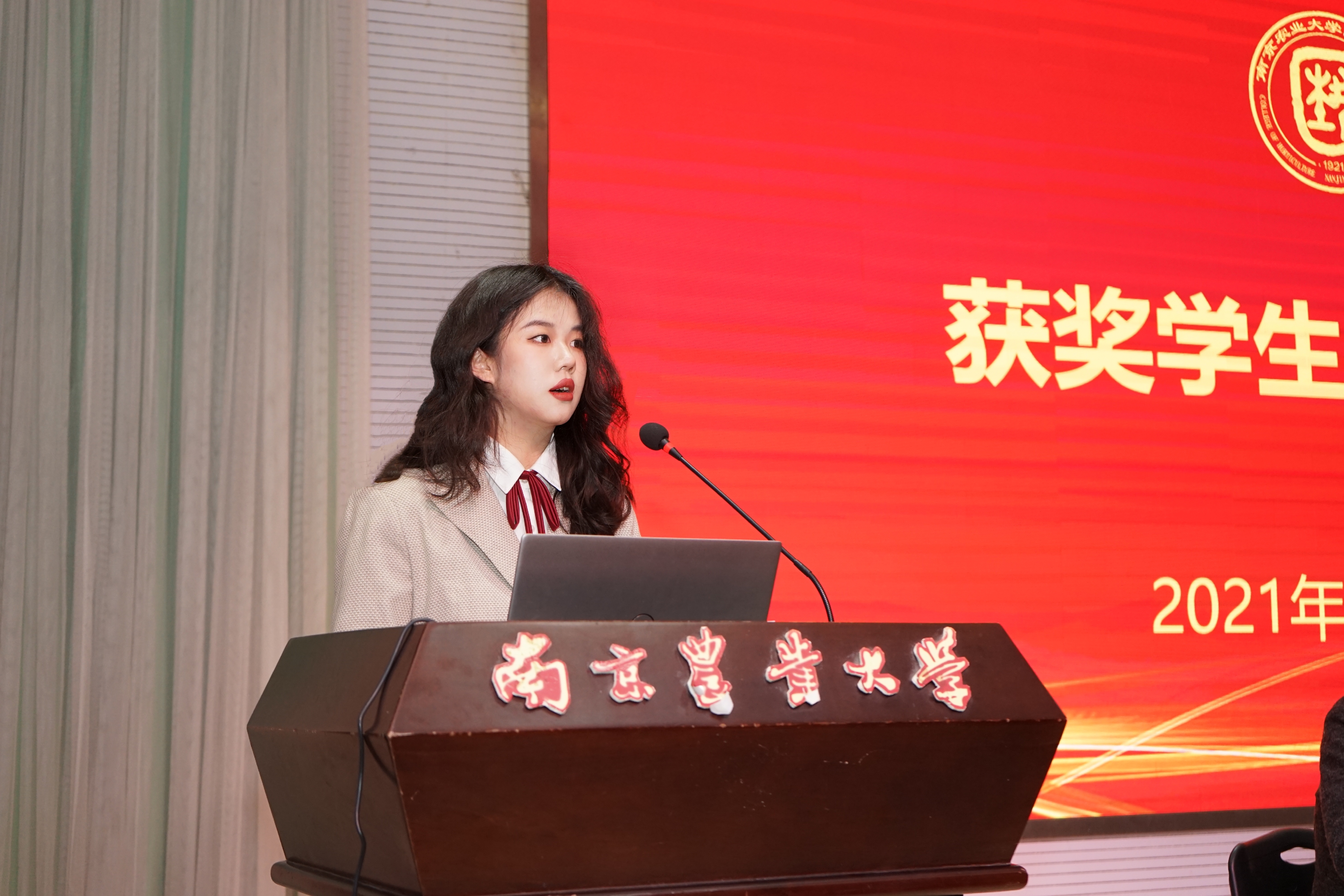 金埔园林奖学金获得者张好雨作为获奖代表发言,她就个人学习、专业竞赛、学生工作等方面情况作了简要汇报,并表达了对设奖企业的感谢。