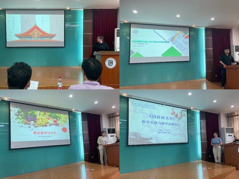 10位参赛教师依次进行了教学实践与教学创新设计汇报,分别从教学理念与目标、教学内容、过程与方法、考评与反馈几个方面进行了汇报,展示了日韩三级片