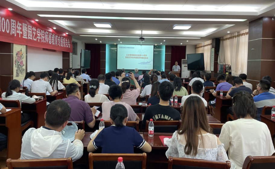 院长吴巨友、曹寿椿先生家属代表王绍中、系主任、学院教师、学生代表等参会。会议由学院党委书记韩键主持。本次报告会是庆祝园艺系成立100周年系列活动之一。