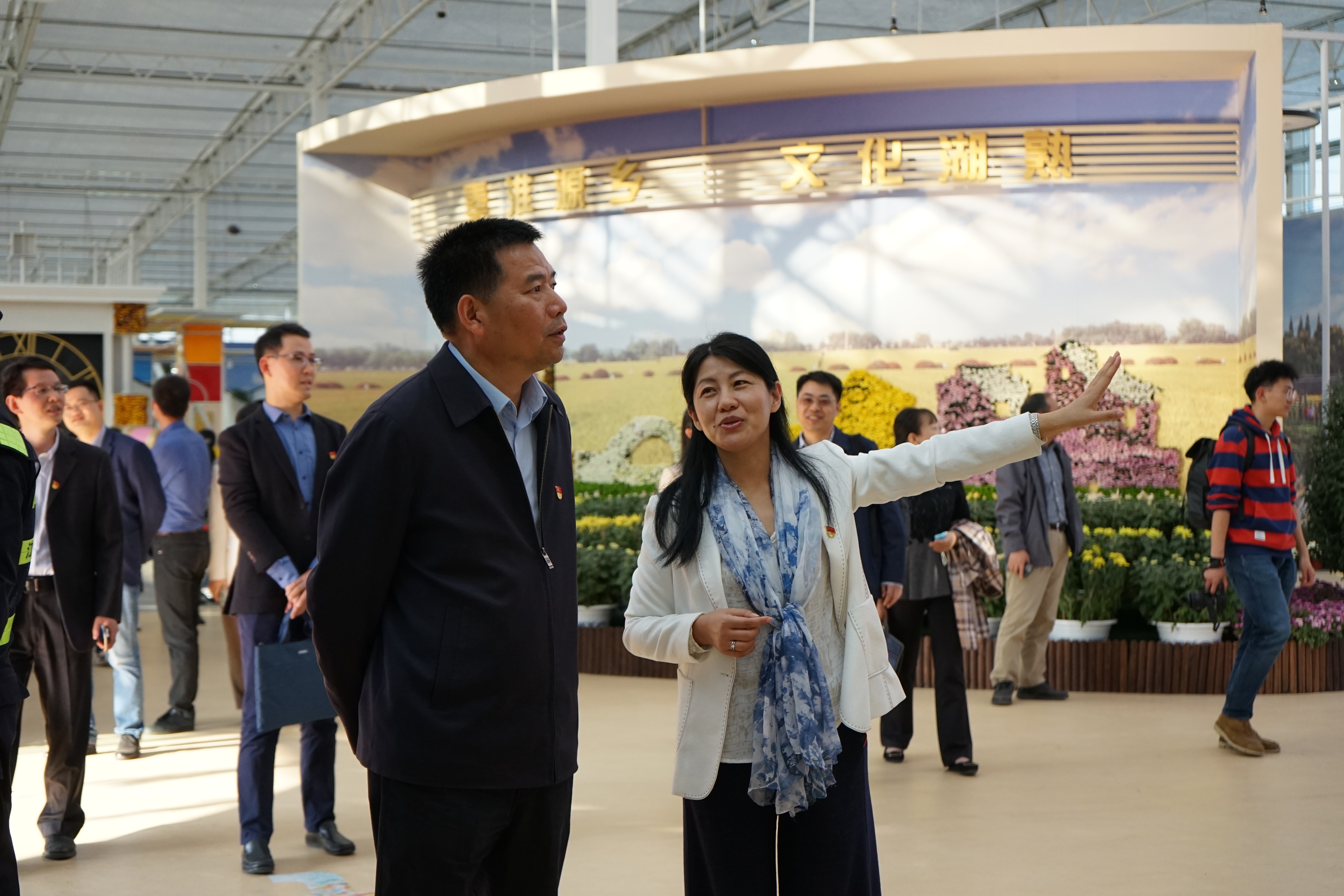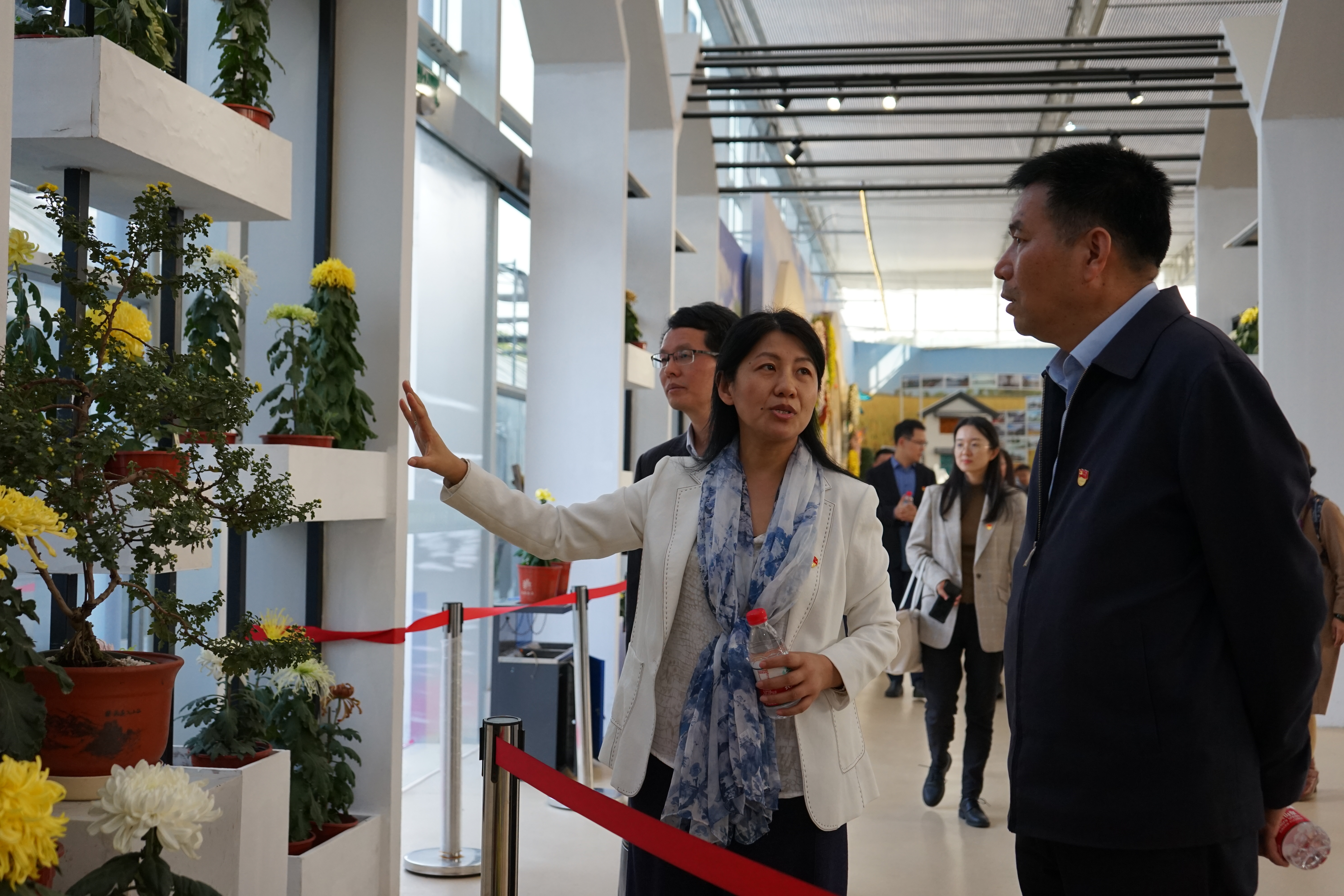 陈素梅带领大家参观了菊花基地,并就菊花种质资源收集、菊花造型技术、菊花应用价值及相关科研成果等内容向大家做详细介绍。