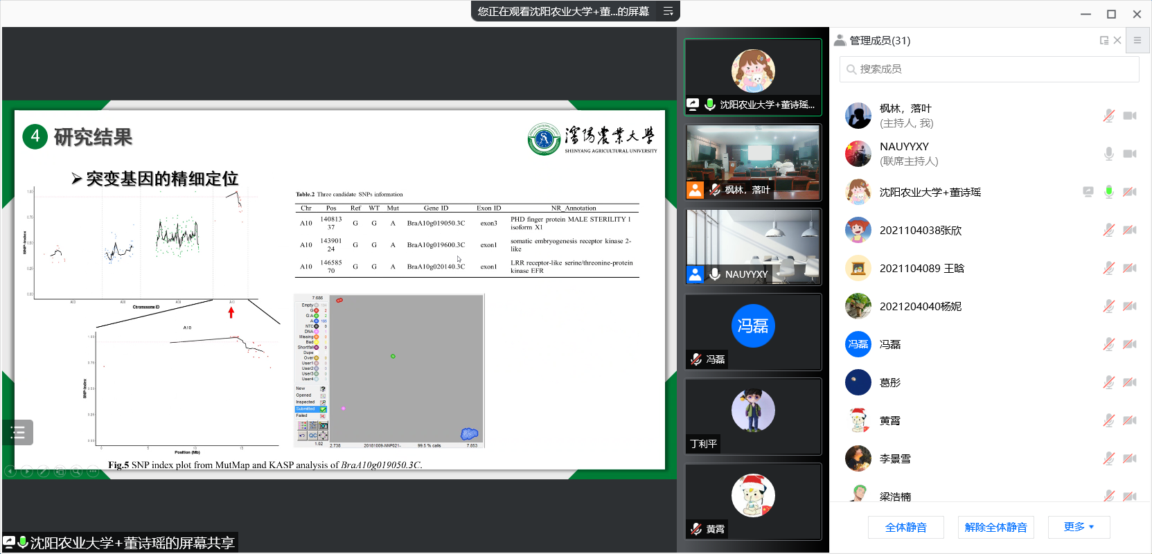 关云霄博士带来了题为《不亲和S-RNase介导DGK4调控液泡形态的分子机制》、《云南野生果树资源及果业发展调研》、《CmJAZ1-like调控菊花开花的功能研究》的精彩报告,为与会师生拓宽了研究思路。