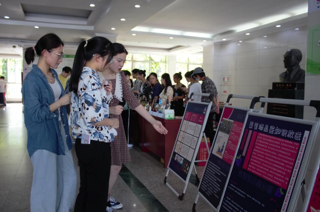 初夏来临,一杯甘甜美酒格外吸引人。葡萄酒品酒文化会上,师生络绎不绝,展现出日韩三级片