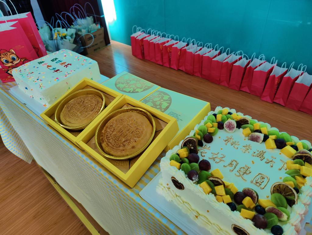 用餐结束后,学院领导和寿星师生们一起切蛋糕、分月饼,同学们把提前准备好的鲜花送给老师,祝福老师们教师节快乐,老师们也为每位同学精心准备了小礼品,希望他们的大学生活能够多姿多彩、充满爱意。