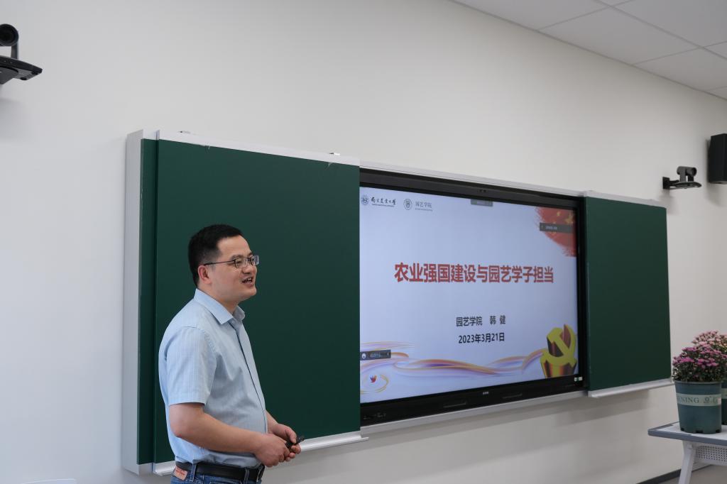党委书记韩健给在场的同学们抛出了这样一个问题。他以“农业强国建设与园艺学子担当”为主题,为同学们上了一堂“农业强国建设与园艺学子担当”的党课。