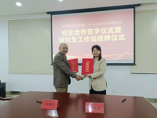 党委书记韩健、院长陈素梅,蔬菜学科陈劲枫教授、张昌伟副教授,学院办公室主任王乙明、学工办主任窦靓、本研学生代表等一行师生10人,赴浙江美之奥种业股份有限公司调研考察、座谈交流,并举行双方合作协议签署仪式、就业创业实习基地签约仪式及研究生工作站授牌仪式,深入推动校企合作,开拓学生高质量就业渠道。