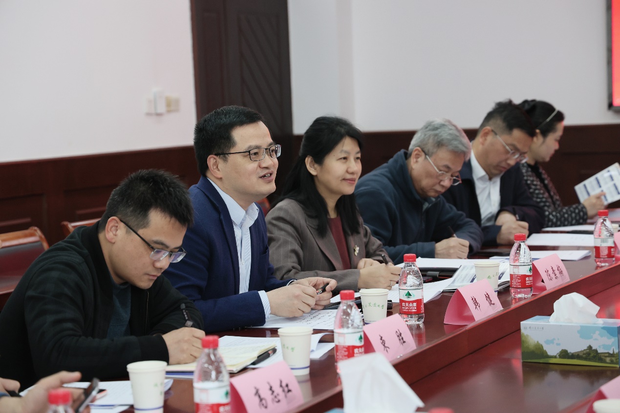 风和日丽,春意盎然。4月9日上午,安徽省明光市政协主席张言平带队来学院考察交流,洽谈合作。明光市委组织部副部长史卫明、农业农村局副局长卢正兵、明光街道党工委书记于文龙、桥头镇党委书记史立清、明光街道党工委组织委员李鑫鹏、明光街道重点项目办主任范军等陪同来访。学院党委书记韩健、院长陈素梅、副院长束胜及学科团队教师代表等参加交流座谈。会议由韩健主持。