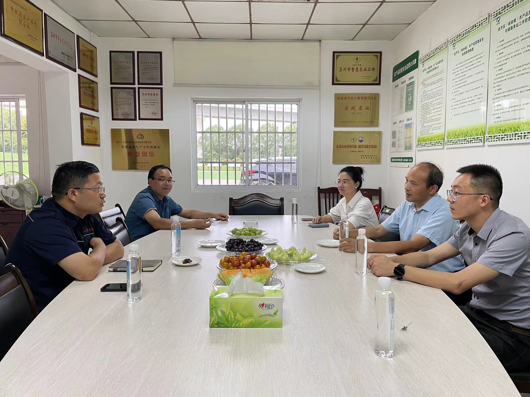 此次访企拓岗分别走访常熟市佳盛农业科技发展有限公司、张家港大农(苏州)农业科技有限公司、江苏善港生态农业科技有限公司,一行看望正在企业内进行暑期社会实践的学生,并与3家企业开展座谈。企业围绕公司发展历程、运营模式以及人才需求与学院交流,针对技术合作等专业领域提出自身需求和合作规划。钱春桃作为技术指导为企业负责人解答相关生产问题,并提出后续校企合作模式中的建议。文习成针对当前高校毕业生就业形势,向企业提出实践-就业同频协作试点模式,推动学生更深入了解企业,帮助企业更有效留住人才。座谈会后,学院与张家港大农(苏州)农业科技有限公司,签订大学生社会实践基地共建协议与就业创业实习基地共建协议,并举行挂牌仪式。