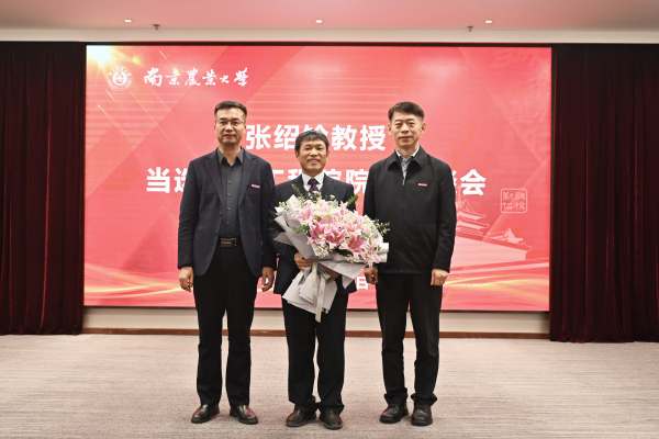 陈发棣表示,长期以来,张绍铃院士深耕梨园,致力于梨分子遗传基础、种质创新及栽培研究与应用,潜心钻研、艰辛探索,取得了突出成绩,培养了大批人才,推动了产业高质量发展,展现了农业科学家的博大胸怀和扎根中国大地、坚守师道初心、矢志强农报国的家国精神。学校要以张绍铃教授当选院士为契机,持续深化人才强校战略,努力培养更多高水平人才,为“三农”事业高质量发展提供人才支撑。陈发棣希望,广大师生要以院士为榜样,把论文写在祖国的大地上,把科技成果应用在实现现代化的伟大事业中,为建设农业特色世界一流大学继续奋斗,为建设教育强国、科技强国、农业强国贡献智慧和力量。
