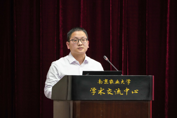 沈其荣院士向新当选的张绍铃院士表示祝贺。他勉励全校科技工作者,学习张绍铃院士持之以恒、坚持不懈的科研精神,扎根中国大地开展科学研究,坚守和聚焦产业技术的科学问题,艰苦奋斗、攻坚克难、迎难而上,为解决国家“三农”问题贡献南农智慧、提出南农方案。