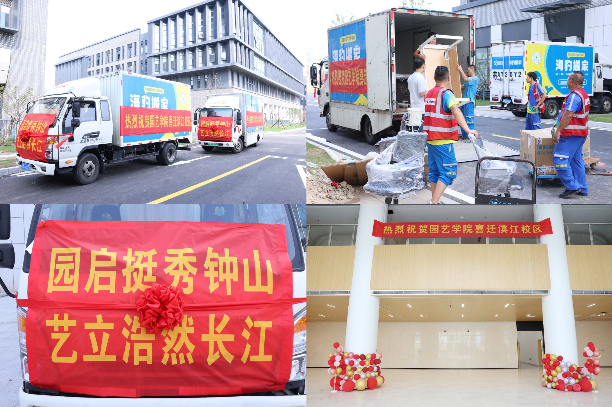 学院党政对搬迁工作高度重视,多次召开协调会与推进会,与全院教职员工一道,周密制定计划表,方案图。整个搬迁工作组织有力,高效有序。首发当日,满载货物的搬迁车辆整装待发。学院以“园启挺秀钟山,艺立浩然长江”续写全体园艺人的卫岗校区美好记忆,开启滨江校区崭新篇章。伴随着人群快欢呼声,整齐划一的车队,满怀喜悦与希望,奔赴滨江校区。