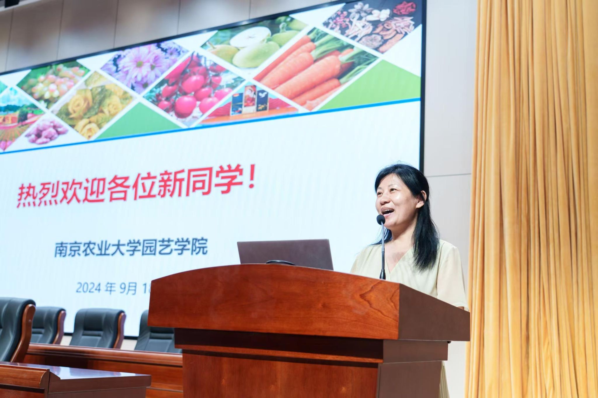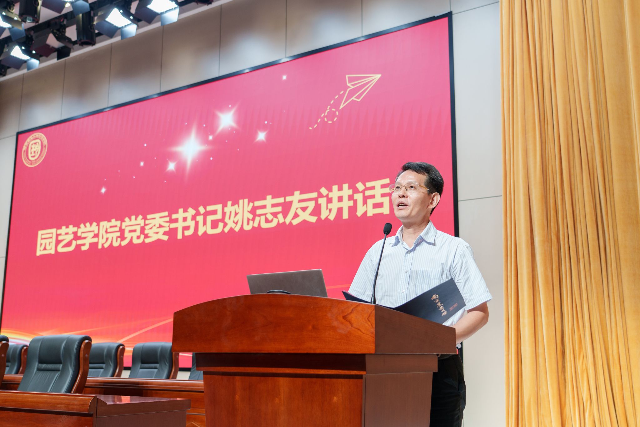 姚志友讲述了学院的办学历史和辉煌成就。他希望大家以校训、院训精神为引领,铸就诚实正直品格;保持空杯心态,主动学习,不断完善自我;培养合作精神,通过沟通交流提升理论水平;树立社会责任感,心怀天下、勇于实践,为中国式现代化提供南农园艺人的答案。