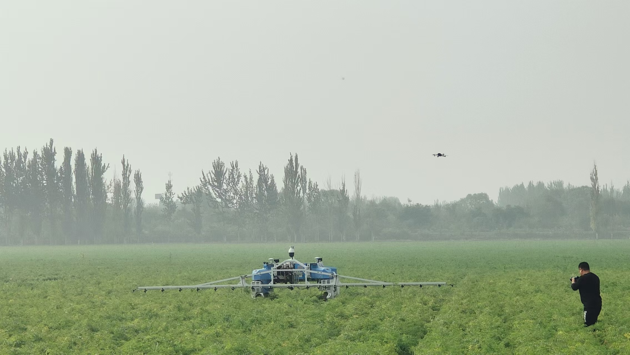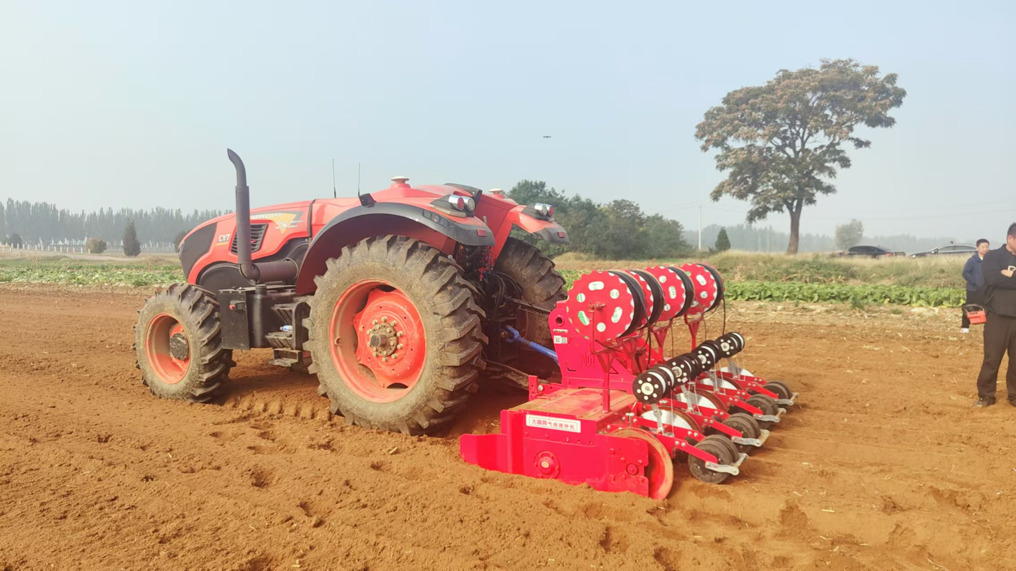 其中,国内首款胡萝卜无人驾驶联合收获机为本次观摩重要技术。该收获机采用无级变速履带底盘,双模聚拢扶缨喂入、分离锨式震动破土挖掘、柔性扶缨加持、自主输送拉齐切缨等技术,一次性完成扶缨、松土、夹持、输送、对齐、切缨、转运等多环节的联合作业,作业效率可达2亩/小时。