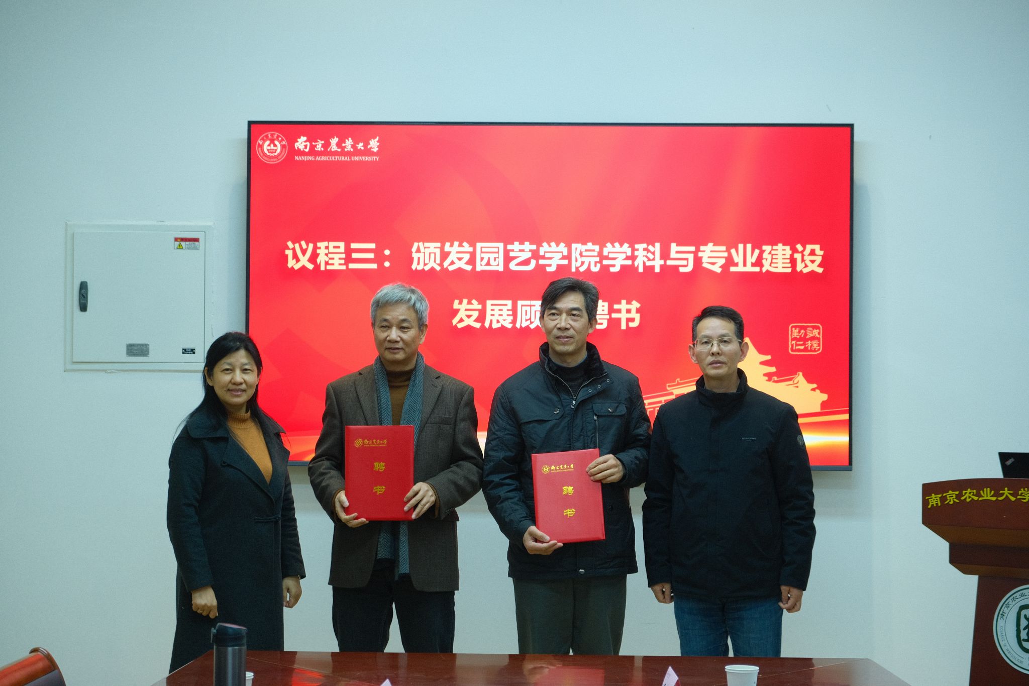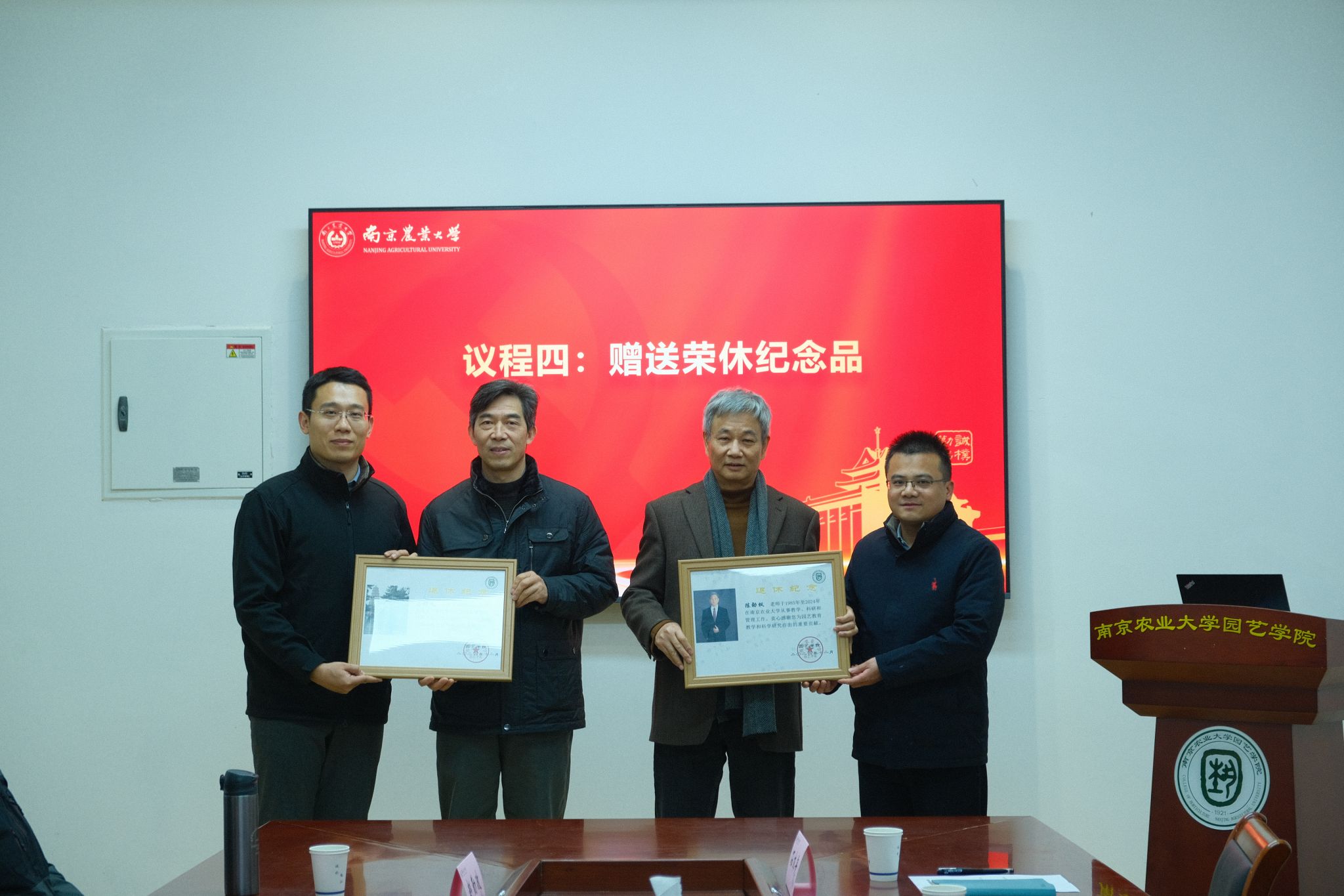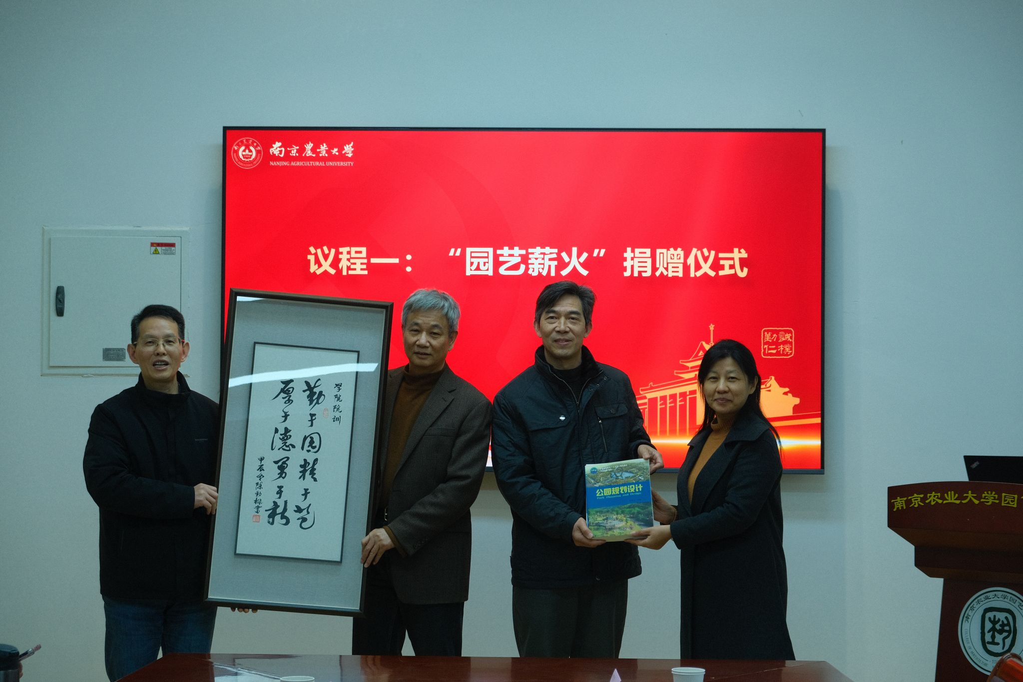 “园艺薪火”,源远流长。退休教师代表陈劲枫教授向学院捐赠了由其书写的“院训”书法作品,马锦义副教授向学院捐赠了个人教材等。学院党委书记姚志友、院长陈素梅、副书记石木舟、副院长束胜分别向两位退休老师颁发了捐赠证书、赠送了学院特制荣休纪念牌匾,并聘任他们担任学院学科与专业建设发展顾问,继续发挥老教师们的经验与智慧,寓意园艺精神薪火相传。