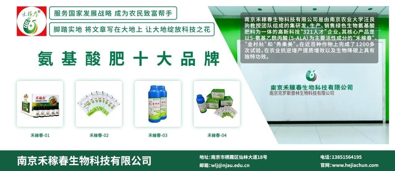 2013年,南京市321人才引进计划支持创办“南京禾稼春生物科技有限公司”,专门从事5-ALA产品研发与推广。我们将5-ALA研制成一种含氨基酸水溶性肥“金村秋”(农肥2017准字6991),并且创出品牌,多次获得政府嘉奖。