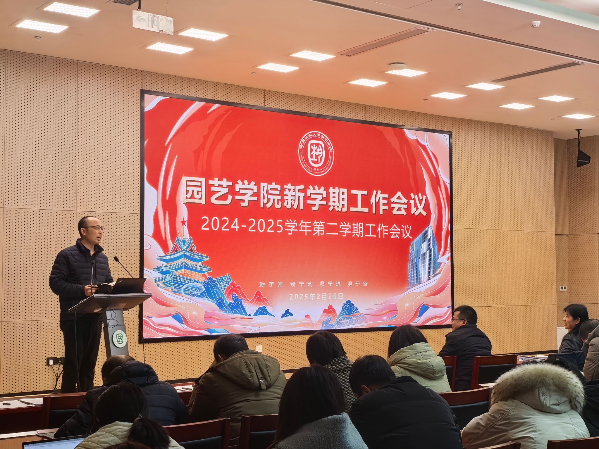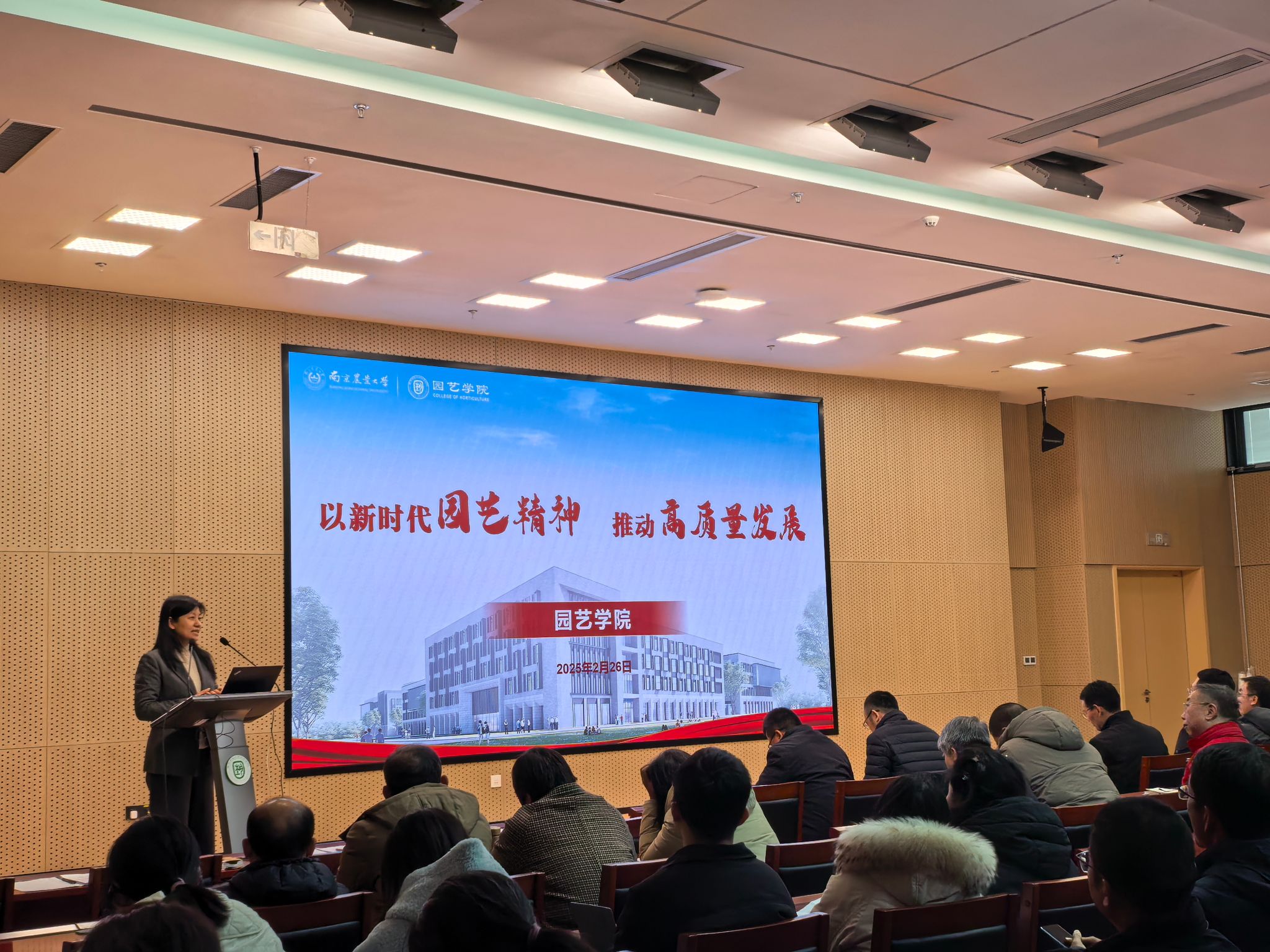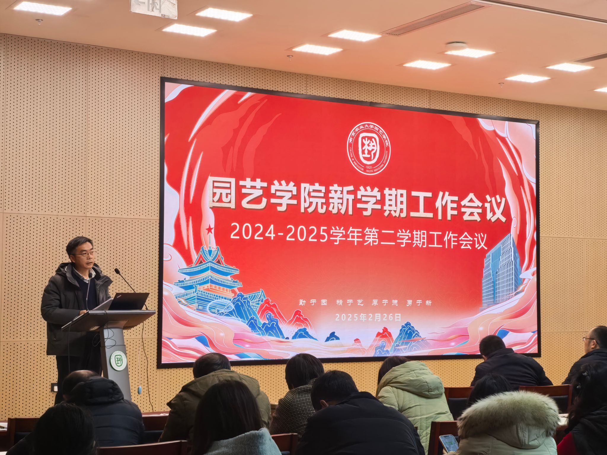院长陈素梅作了题为《以新时代园艺精神推动高质量发展》报告。她回顾了2024年学院办学取得的丰硕成绩,逐一解读了本年度工作目标,强调了达成目标的重要性,提出了目标实现的路径举措。她强调,2025年,学院将围绕党建引领、人才培养、人事人才、学科建设、科技创新、学生工作、国际合作、社会服务、平台建设以及“安·和·美·富”工程等重点工作展开。她要求全院上下进一步坚定信心、锚定目标、思想同心、行动同步,再创佳绩。