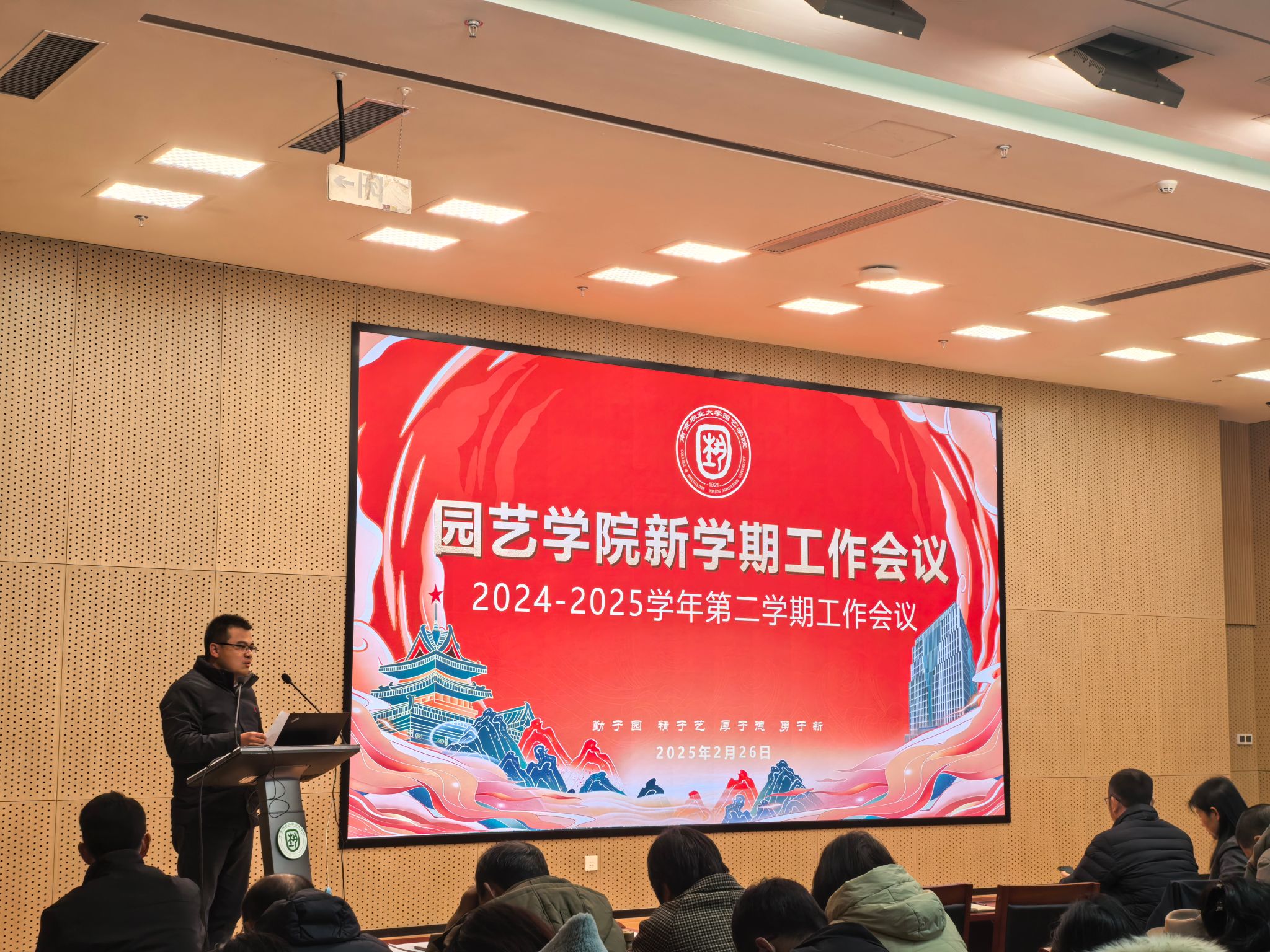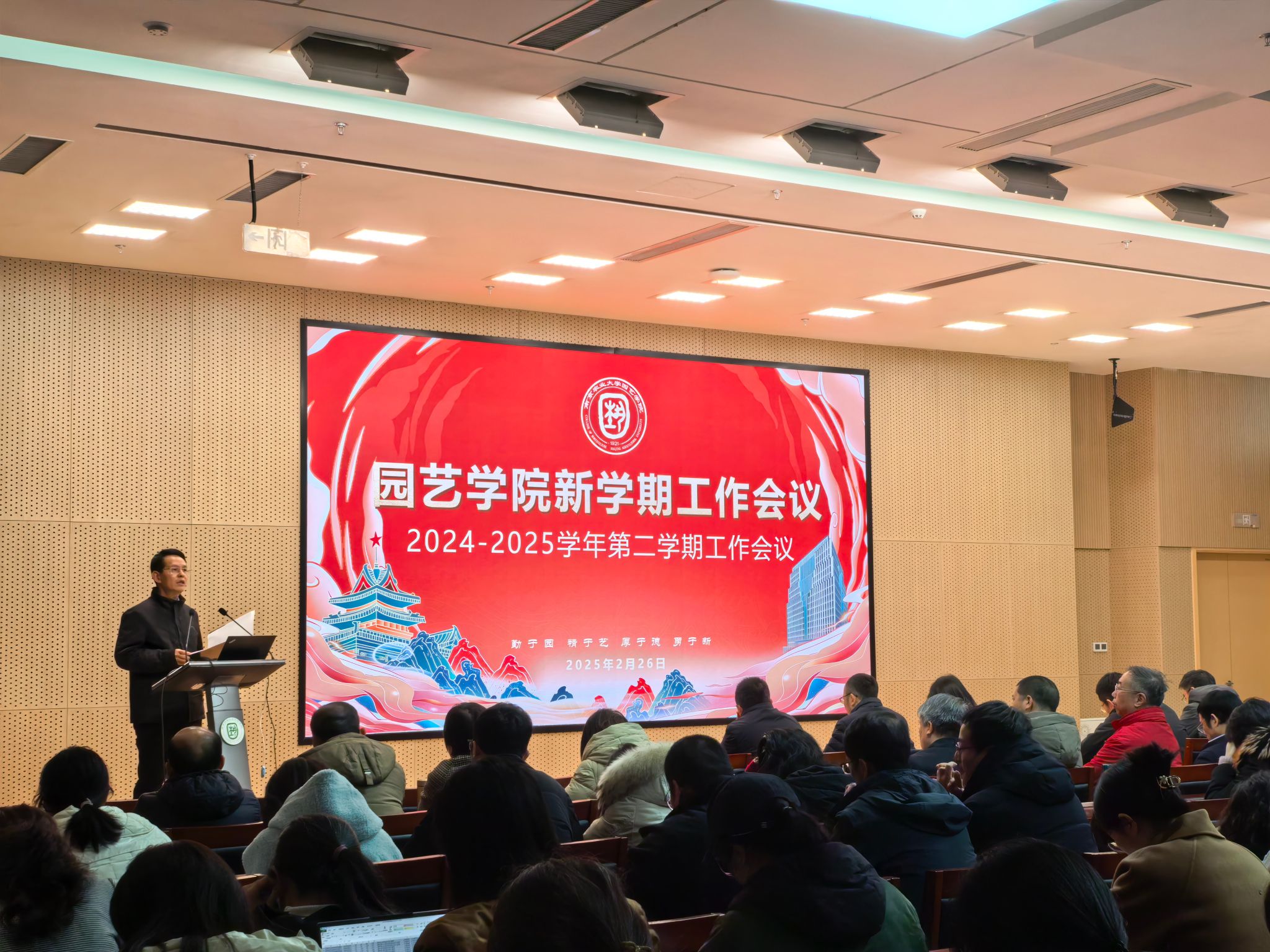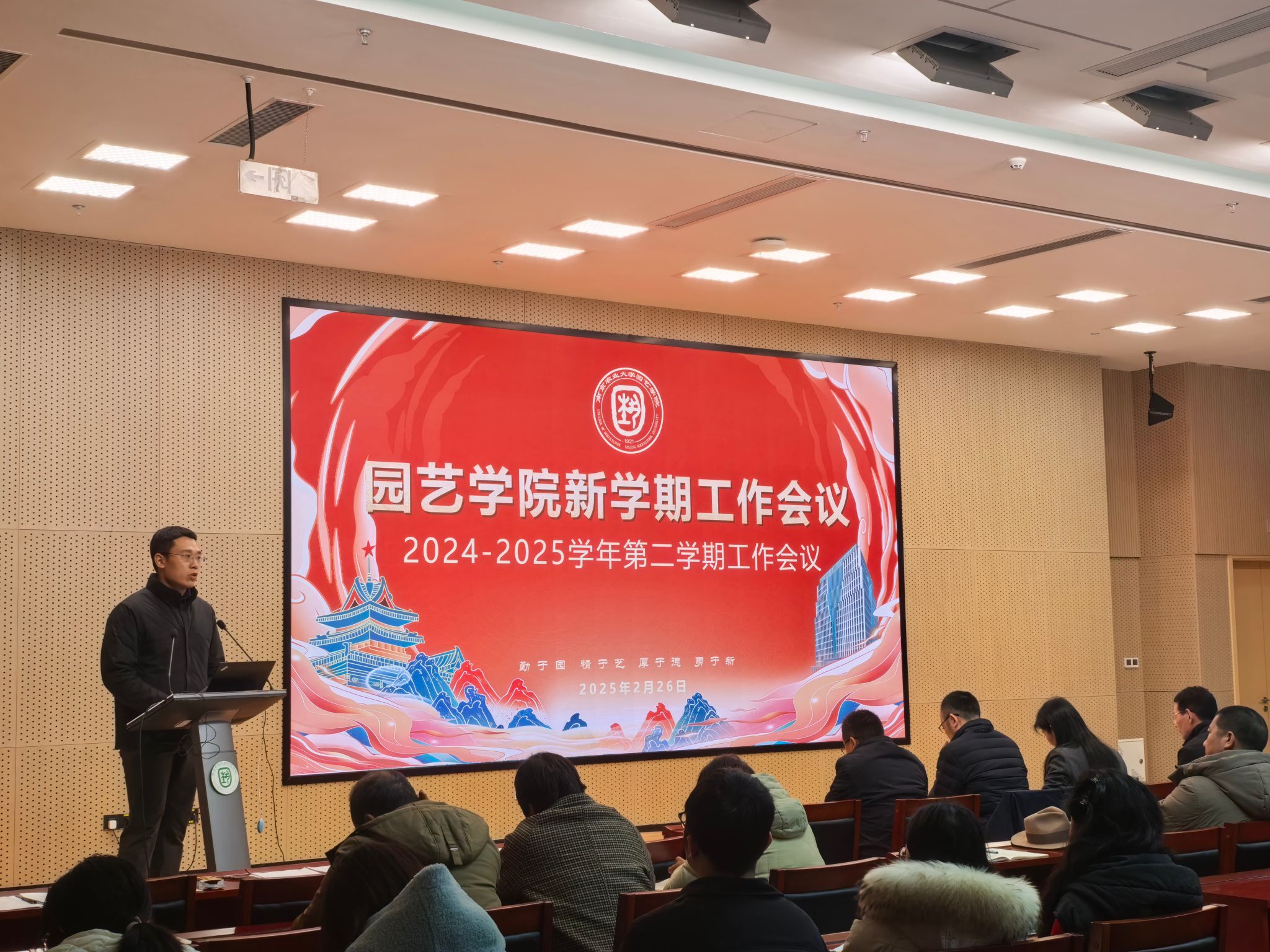 院长陈素梅作了题为《以新时代园艺精神推动高质量发展》报告。她回顾了2024年学院办学取得的丰硕成绩,逐一解读了本年度工作目标,强调了达成目标的重要性,提出了目标实现的路径举措。她强调,2025年,学院将围绕党建引领、人才培养、人事人才、学科建设、科技创新、学生工作、国际合作、社会服务、平台建设以及“安·和·美·富”工程等重点工作展开。她要求全院上下进一步坚定信心、锚定目标、思想同心、行动同步,再创佳绩。