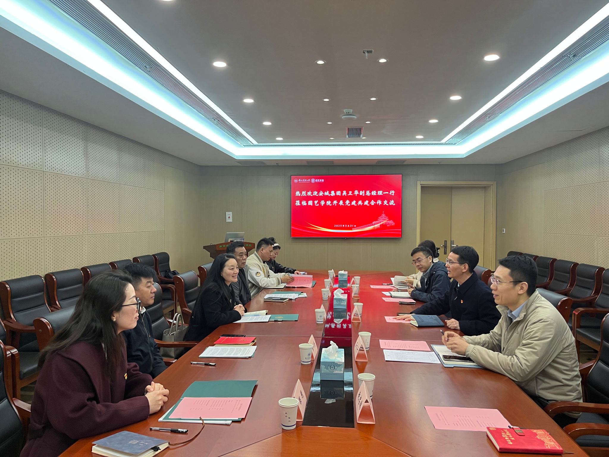 在交流环节,双方围绕党建引领下的具体合作展开讨论。安城集团环卫分公司副总经理孟建国、张以杨提出,环卫公司承担河流、树木的养护,希望借助学院科研力量优化技术方案;御河分公司副总经理张俊则关注河道生态,希望探索联合开展课题研究机制;园林分公司副总经理邵艳结合公司推出的系列化妆品,表达了与日韩三级片