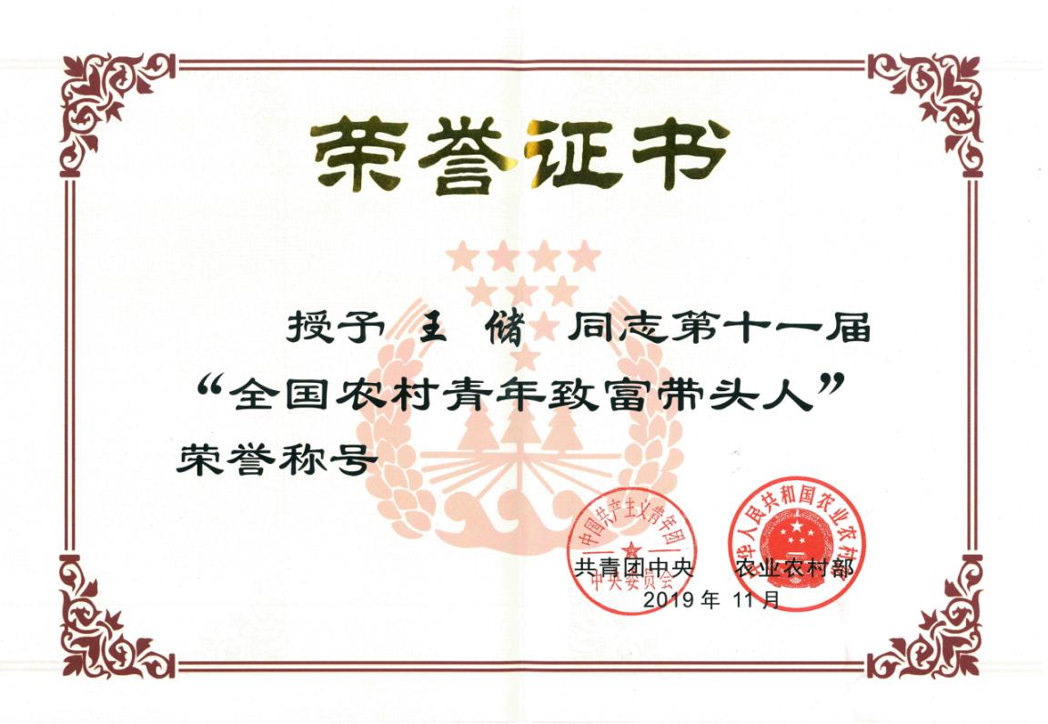 推报的王储等3名同学经严格的遴选推荐、资格审查、大众评审、社会公示、专家会审等环节,最终脱颖而出,荣膺第十一届“全国农村青年致富带头人”荣誉称号,我省仅11名同志获此殊荣。