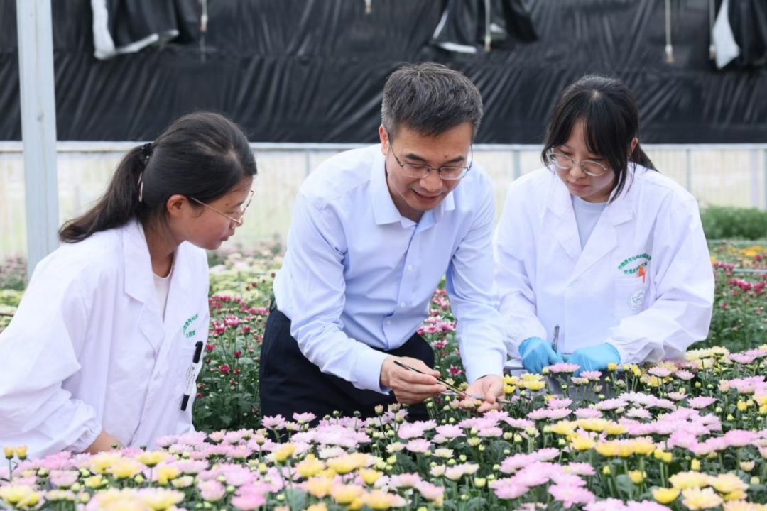 团队负责人陈发棣教授指导学生开展菊花杂交育种