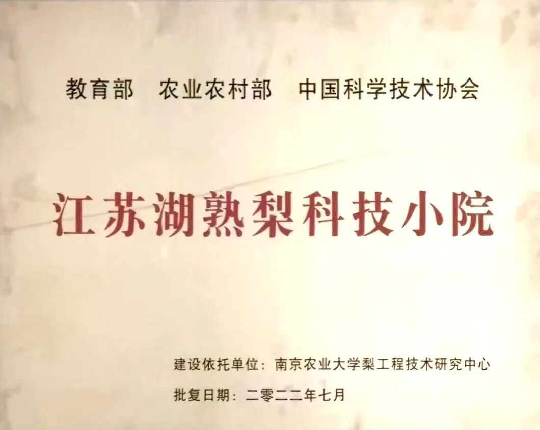 深化产教融合,团队携手多家企事业单位搭建协同发展平台,建成教育部、农业农村部、中国科协三部委联合认定的首批科技小院1个、省级科技小院4个,设立研究生工作站4个、梨产业研究院3个,获批江苏省科普教育示范基地1个,实现产学研用深度融合,让科研成果快速转化为产业发展动能。