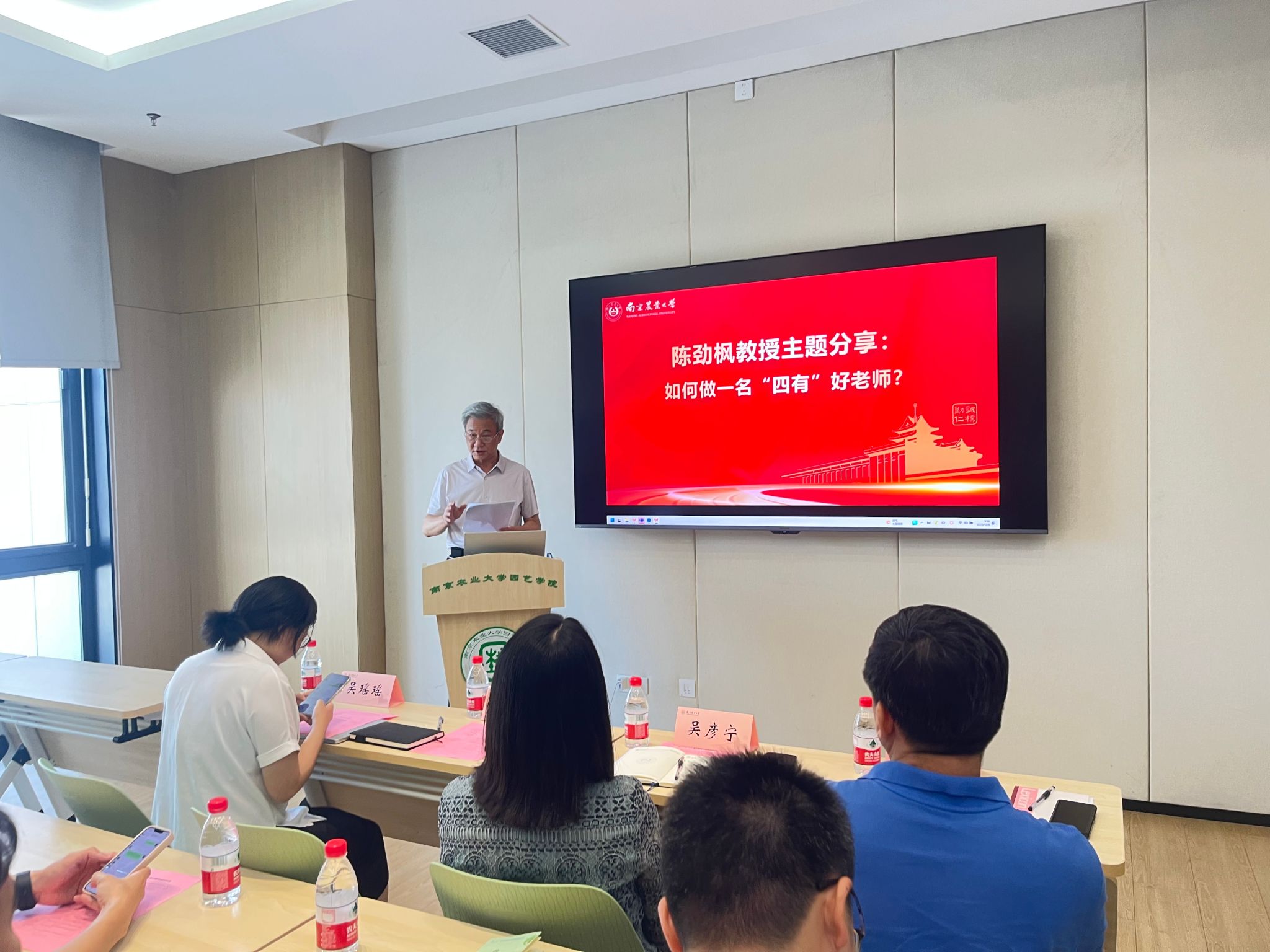 吴震教授围绕“如何做好本科教育教学?”这一主题,从“如何理解教育教学”、“为何进行教育教学”与“如何做好教育教学教学”三个维度展开了系统论述。他引导青年教师深入理解教育的本质,明晰教学的核心价值,并最终落脚于一系列行之有效的课堂实践方法。整场分享逻辑严密、内容充实,为青年教师站稳三尺讲台提供了一套清晰的方法论。