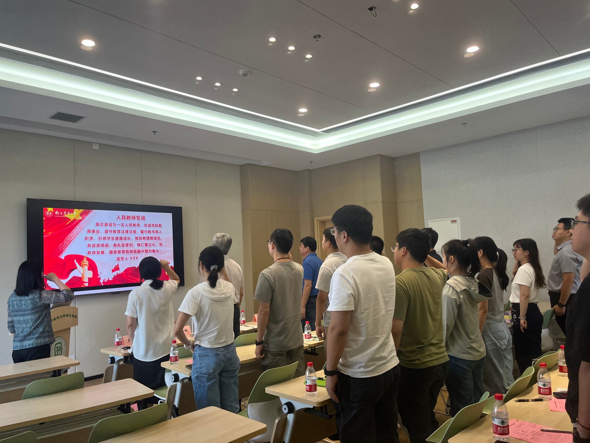 在吴彦宁的带领下,全体新入职教师许下了忠诚于党的教育事业、恪尽教师职责的坚定承诺。