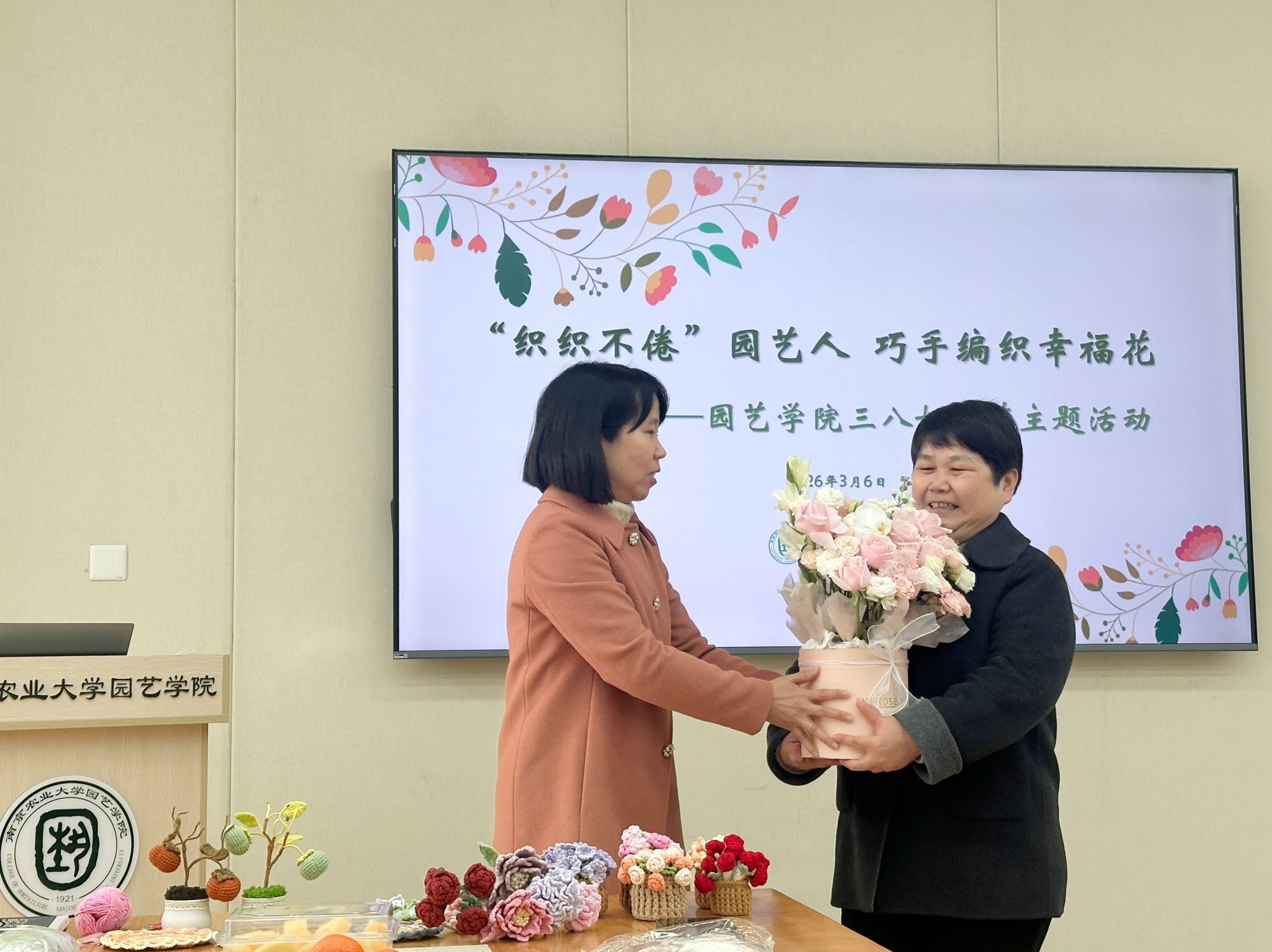 工会于滨江校区园艺楼167活动室举办“三八”妇女节主题活动,院党委书记吴彦宁出席,各学科女教职工齐聚一堂,共庆节日、共学技艺。