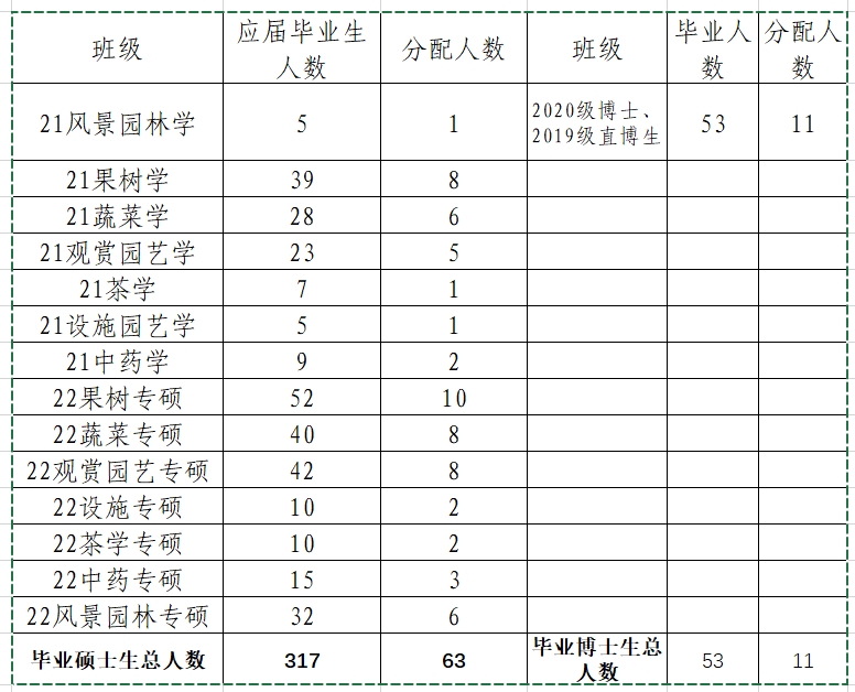 (按应届毕业研究生人数20%的比例计算,四舍五入),详见下表。