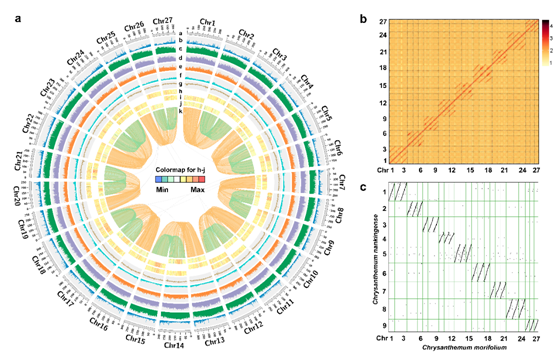 陈发棣团队在Nature Communications上发表了题为Analyses of a chromosome-scale genome assembly reveal the origin and evolution of cultivated chrysanthemum的研究成果。该研究破译了六倍体栽培菊花基因组,报道了国际上首个节段异源多倍体基因组(segmental allopolyploid),深入探究了栽培菊花的起源和育种历史,也为下一步解析菊花重要园艺性状(花型、花色、株型、抗逆等)形成的分子机制和定向育种奠定了基础。