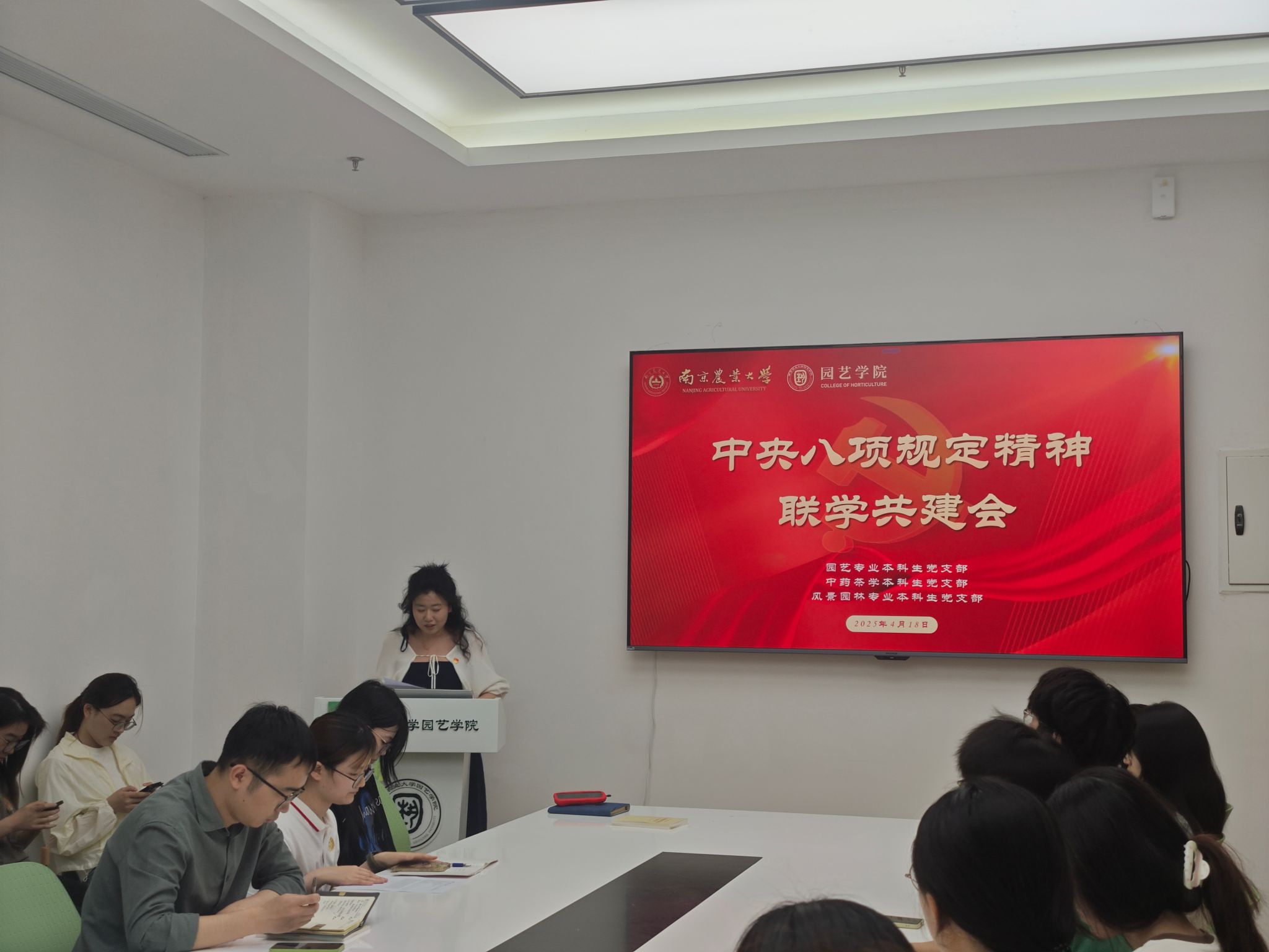 为深入学习贯彻中央八项规定精神,扎实推进党的作风建设,4月18日下午,日韩三级片 园艺专业本科生党支部、中药茶学本科生党支部、风景园林专业本科生党支部在园艺楼134联合举办“中央八项规定‘纪’在心上”专题党课暨《习近平关于党的作风建设论述摘编》(以下简称《摘编》)学习研讨会。日韩三级片 副院长张清海、院党委副书记石木舟出席指导,各党支部书记、副书记及党员代表参加活动。会议由园艺专业本科生党支部书记崔洋主持。