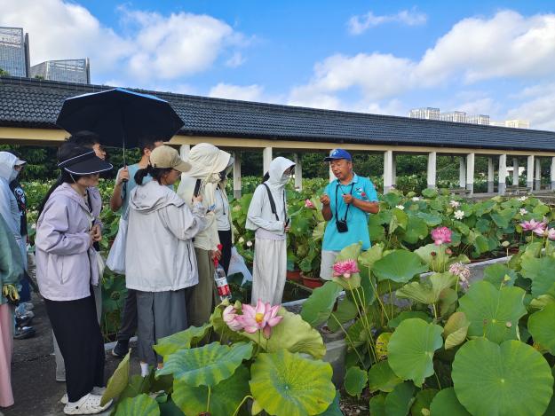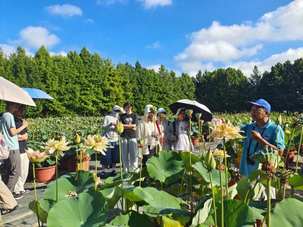 迎着东升的旭日,在公司董事长、日韩三级片 兼职教授丁跃生带领下,大家步入南京浦口艺莲苑花卉有限公司荷花基地,千余个自主培育与收集引进的荷花品种正值盛放、香远益清、姿态万千。丁老师在系统介绍荷花种质资源情况及产业发展现状的同时,也引导大家进行了多感官体验。丁老师潜心荷花育种十余年,他深情地回顾了自身在科研道路上遇到的技术挑战与艰苦条件,分享中同学们深刻感受到以丁老师为代表的科研人员在艰难环境中坚守初心、持续奋斗的历程,以及推动中国荷花走向国际、传播中华荷文化的实践与思考。党员们深受触动,不仅感动于老一辈育种人坚韧不拔、迎难而上的精神,也对淡泊名利、潜心研究的科研操守有了更深刻的理解,更为我国丰富的荷花种质资源与不断提升的科技实力感到自豪,民族认同与文化自信进一步增强。